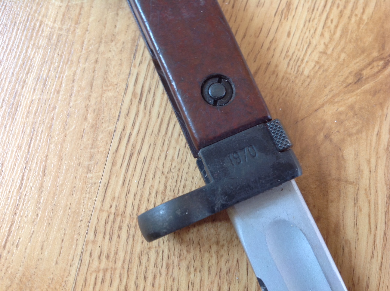 Saw this earlier today and wanted to run this by the group. This is the first time I have seen a green bakelite 1970 bayonet. Has anyone seen these before? Were there any other countries that made green grips for the 6X2 style bayonets and this could be a replacement?