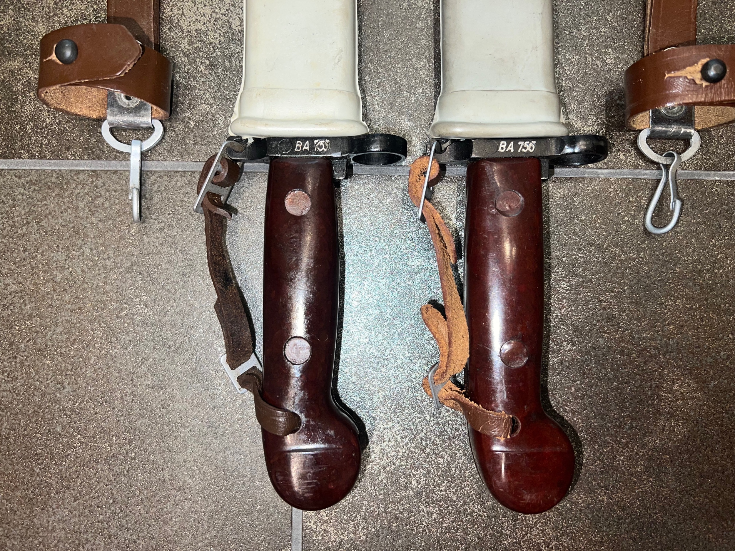 Super nice! Original and like NEW with consecutive numbers! Very nice find. For me these two set the standards for the flat pommel bayonets. Also note that the BA series is unique as all the ones confirmed have only three numbers. Probably a little more scarce that the others?