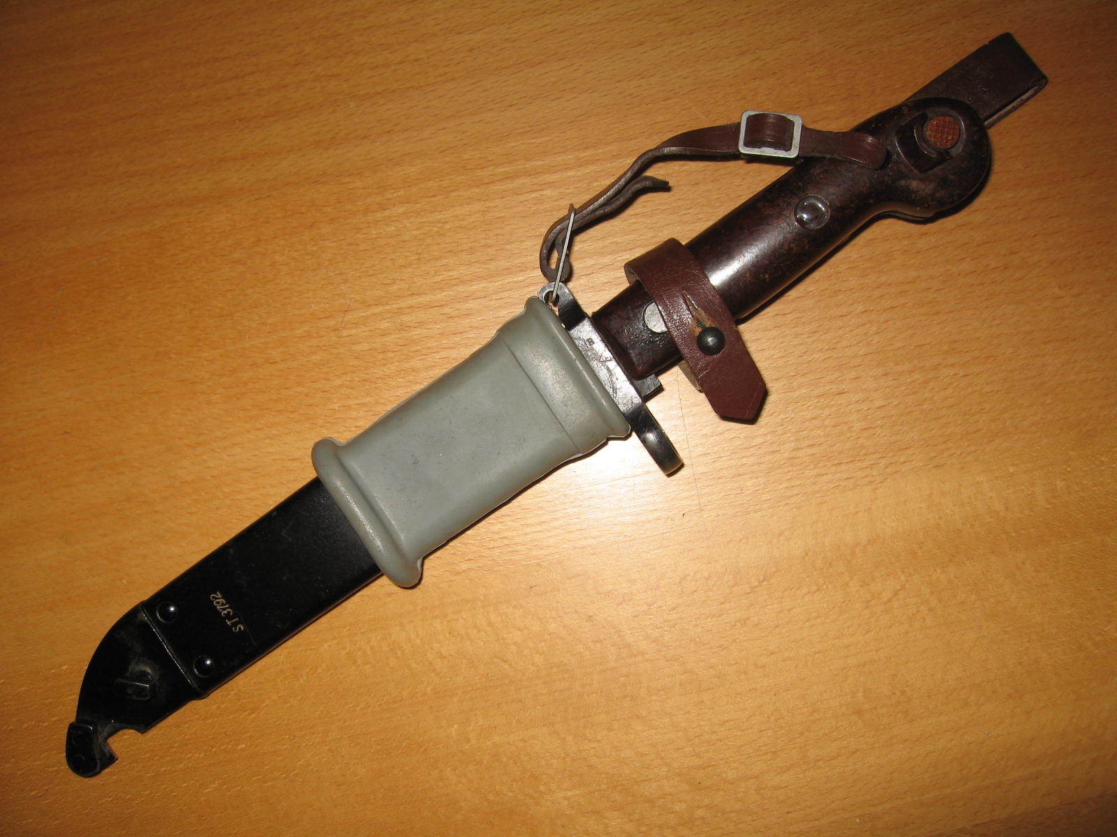 However, for some unknown reason the Romanians also intermittently produced batches of the more standard bayonets with the flat, narrow sided pommel. These bayonets were made in small amounts from 1964 through 1966. They not only had the narrow pommels, but the scabbards were painted black and they appear to have been issued with either a one or two piece snap hook hangers. Mike