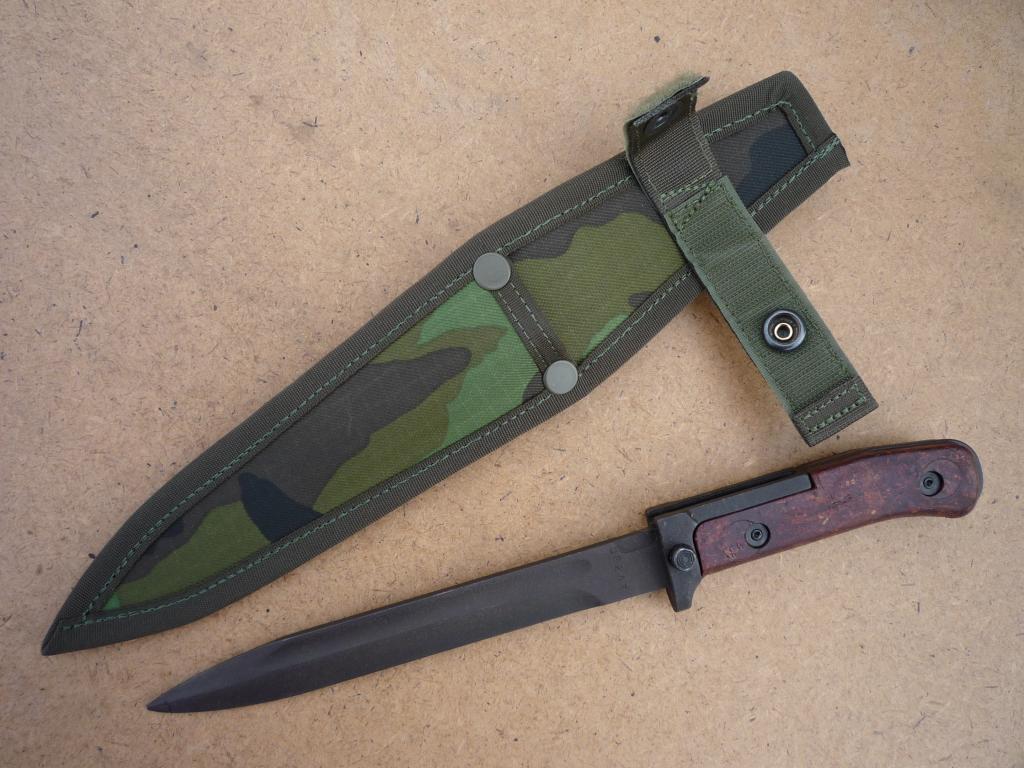 Mr. B. wrote: Sun Jan 03, 2016 7:10 pm Yes, examples of this new scabbard in both foliage and desert camo have been listed in eBay. Whether they were a commercial copy or a military overrun is unknown. The Czechs started development of a 5.56mm rifle system from 1986 -89 and adopted System "Lada" in 1991. This system included a new bayonet design. Somewhat similar to the VZ58 bayonet in size and style. The New design still has the mounting slot incorporated in the top of the hilt, but the catch is now located in the pommel. The blades are the same size and profile as the VZ58 and will fit both the VZ58 leather scabbard or the new fabric pattern. It appears that the early "Lada" prototypes, (M63), did use the original VZ58 scabbards. The new 5.56 system has replaced the VZ58 and it has been relegated to reserve status. This explains the large number of VZ58 bayonets available in the last few years. Even though the VZ58 bayonets fit in the new fabric scabbards this is not a correct match. M.
