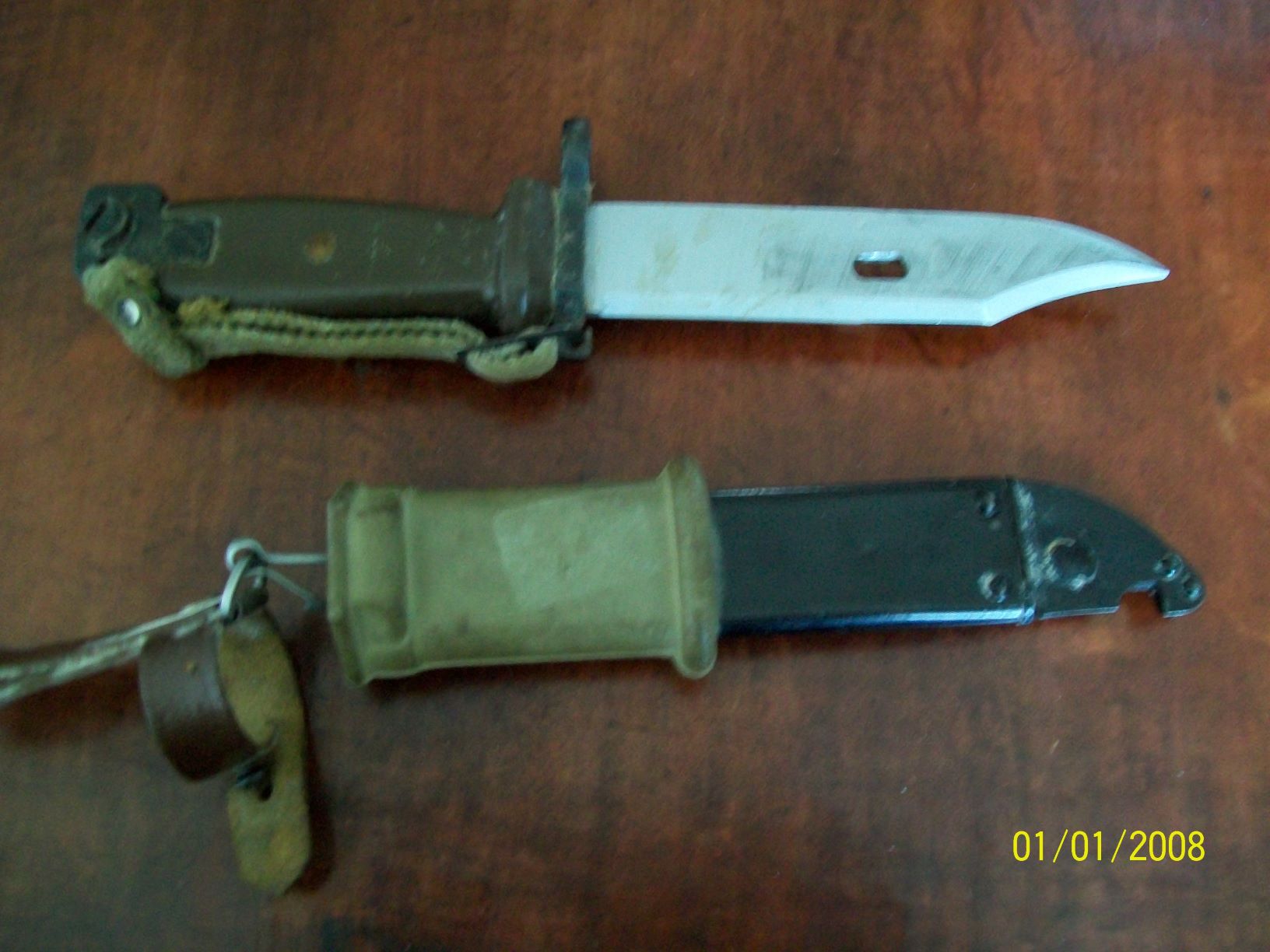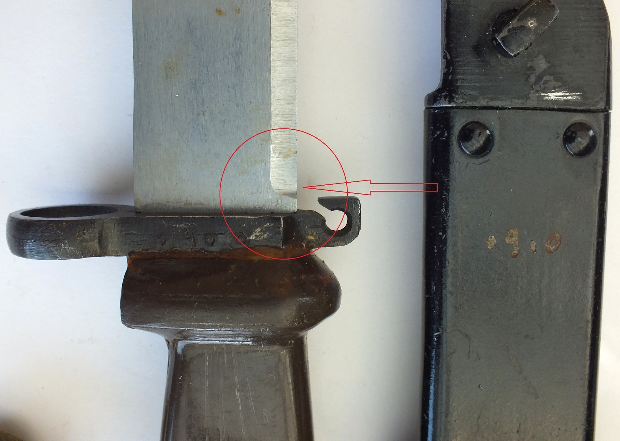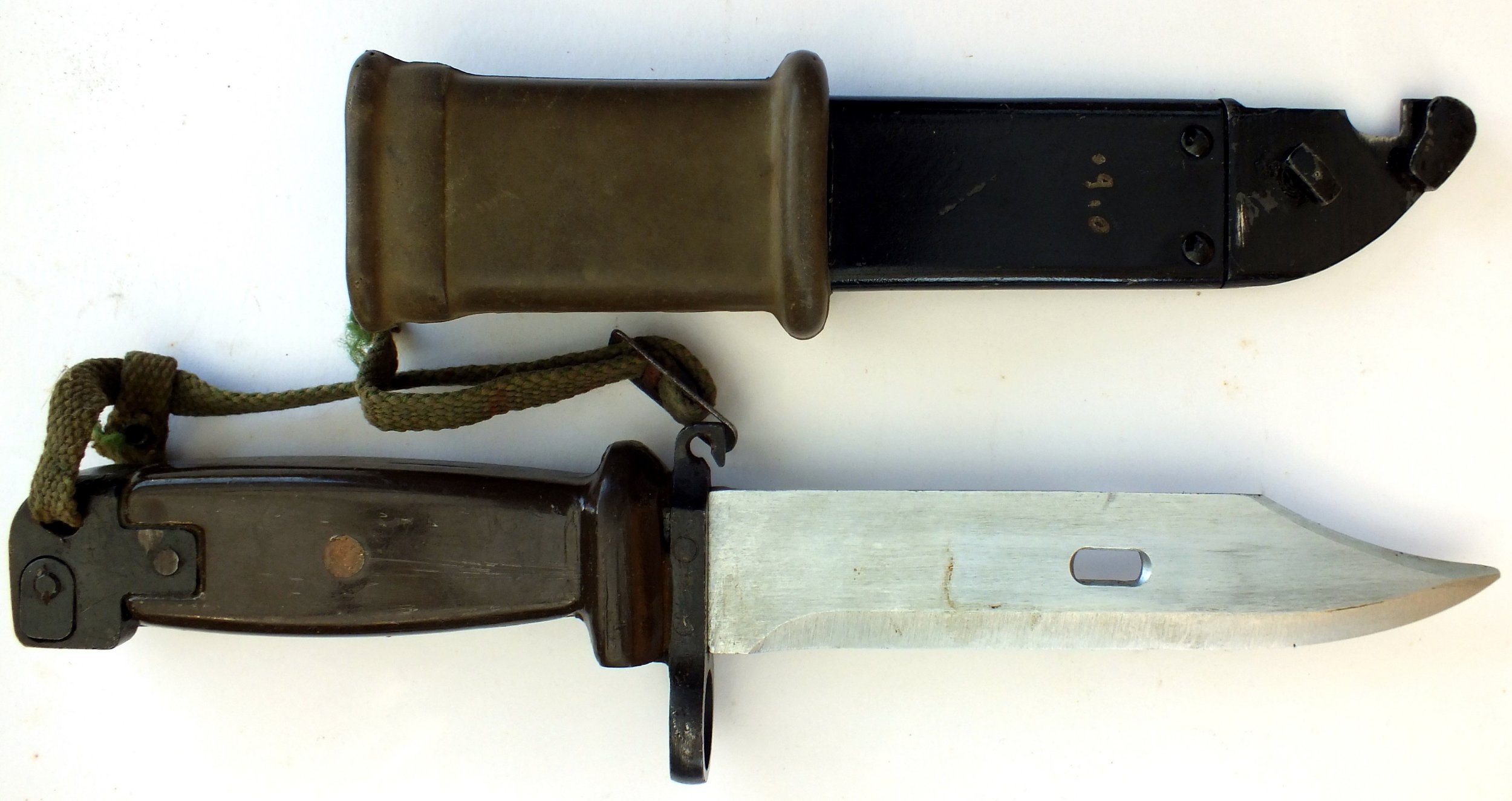 I categorize bayonets and scabbards like these as, "Frankenstein", bayonets. Made and assembled from parts and pieces supplied by different countries and issued/used by yet other countries. If anyone has ever studied the Communist doctrine at the time they were made, the military arms production was designed to be as interchangeable as possible. All the bayonets and scabbards, etc. were made to the same basic specifications and interchangeable between the other ComBloc countries and those supplied by them. Either as complete assemblies or parts and pieces that were made from contacts or surplused from other countries. The same goes for the machinery used to make them in the first place. No end to possible combinations and little if any documentation or information is available.