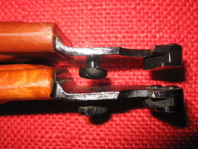 Here are more comparison pictures. Note that the NMD-86 is completely unmarked and is more of flat brown color. Also note that the pivot hole in the blade is oval shaped and is parallel with the blade edges and not canted like the Russian 6X4.