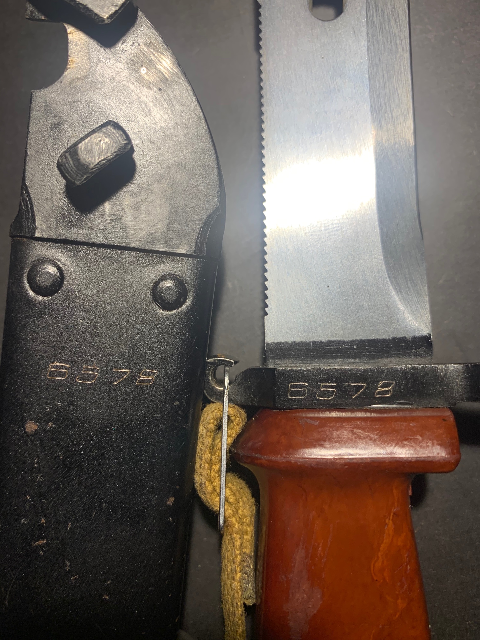 Did you take a closer look at the hole for the strap in the grip head, that's also an authentic feature for Tula 6X4 transition bayonet, the random Rockwell test marks on the blade are also interesting.