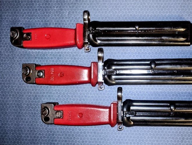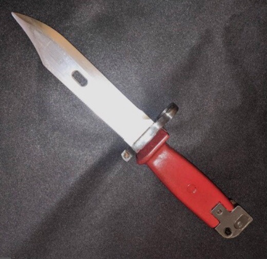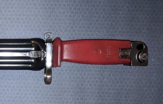 Still not much information available about these Serbian or Yugoslavian AKM 6X4 Type II bayonets and scabbards with "red" grips / handles. I found some pictures of the other, (right), side of the bayonets. Anybody have any knowledge, information or opinions about these bayonets? Any one own one?