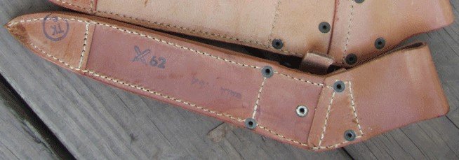 If anyone is interested I have more detailed information and pictures of the Czech VZ58 leather scabbards including construction and markings. The stamped ink markings from each manufacture are unique and located in different places and positions on the back of the scabbards. The also changed with different contract requirements over the years. There are many variables, but most contain the crossed swords and OTK military acceptance marks, the contract date and number, the date of manufacture and the ID of the maker. Unfortunately, most of the markings are worn off or un-readable. Mike