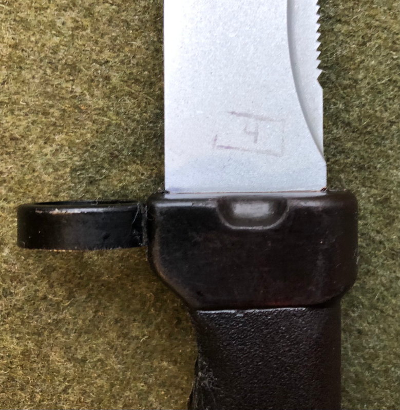 No serial number on the bayonet or scabbard.