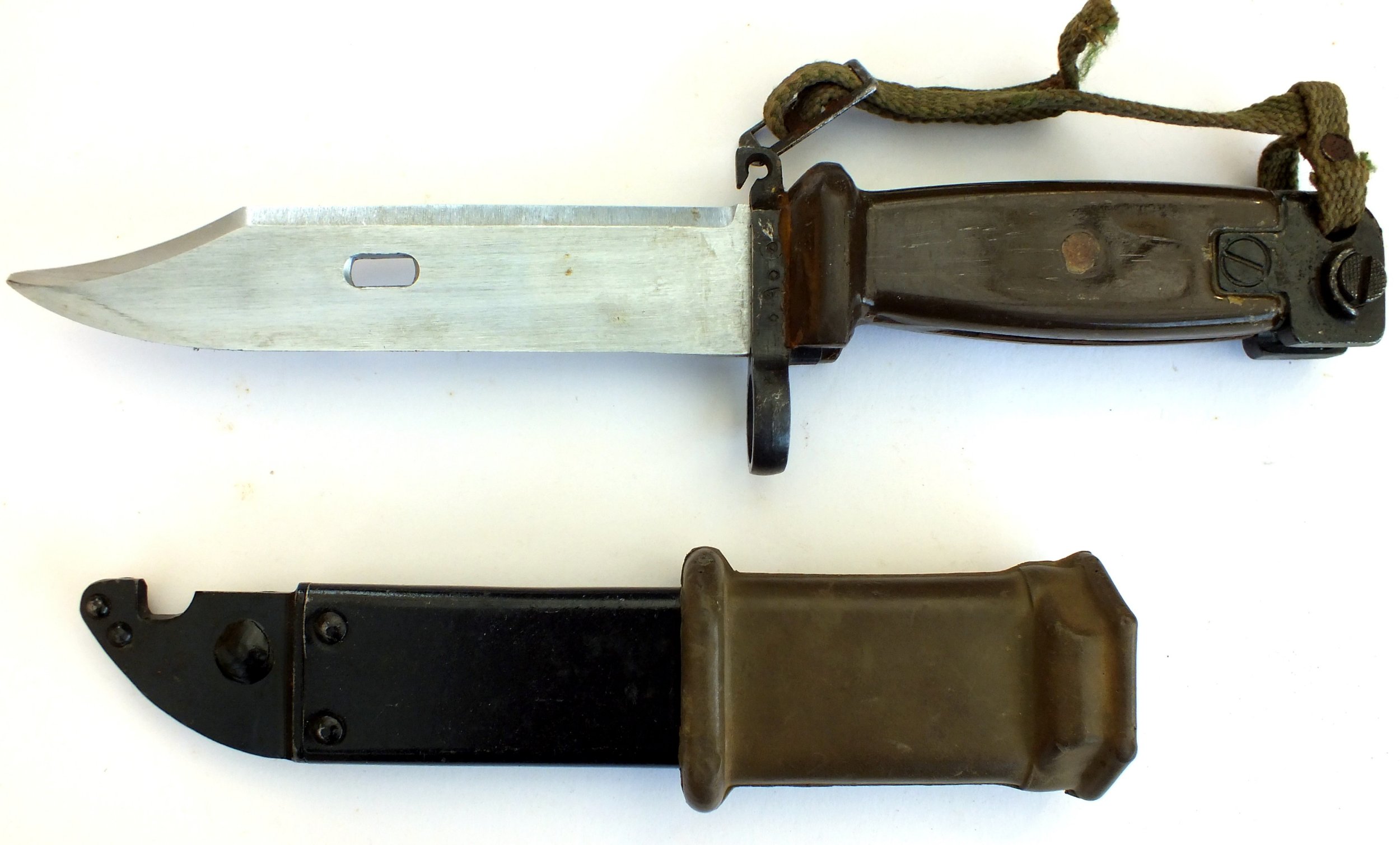 I categorize bayonets and scabbards like these as, "Frankenstein", bayonets. Made and assembled from parts and pieces supplied by different countries and issued/used by yet other countries. If anyone has ever studied the Communist doctrine at the time they were made, the military arms production was designed to be as interchangeable as possible. All the bayonets and scabbards, etc. were made to the same basic specifications and interchangeable between the other ComBloc countries and those supplied by them. Either as complete assemblies or parts and pieces that were made from contacts or surplused from other countries. The same goes for the machinery used to make them in the first place. No end to possible combinations and little if any documentation or information is available.