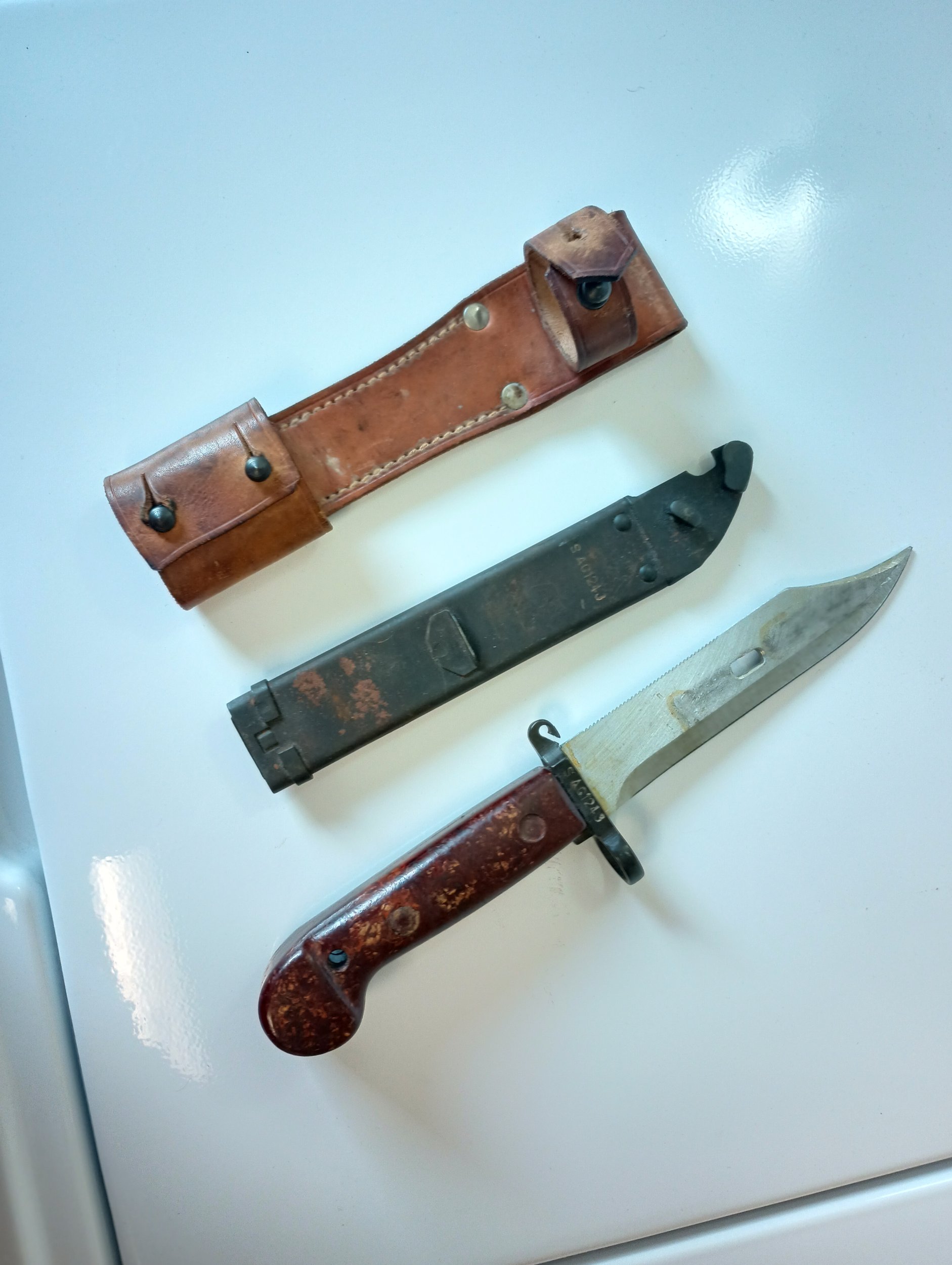 Step-daughter gave me bayonet she found in her father's apartment after he died, he was a Vietnam vet and she wondered if he brought it back with him. Googled and so many choices, luckily I found this great forum, so hope to get any information.