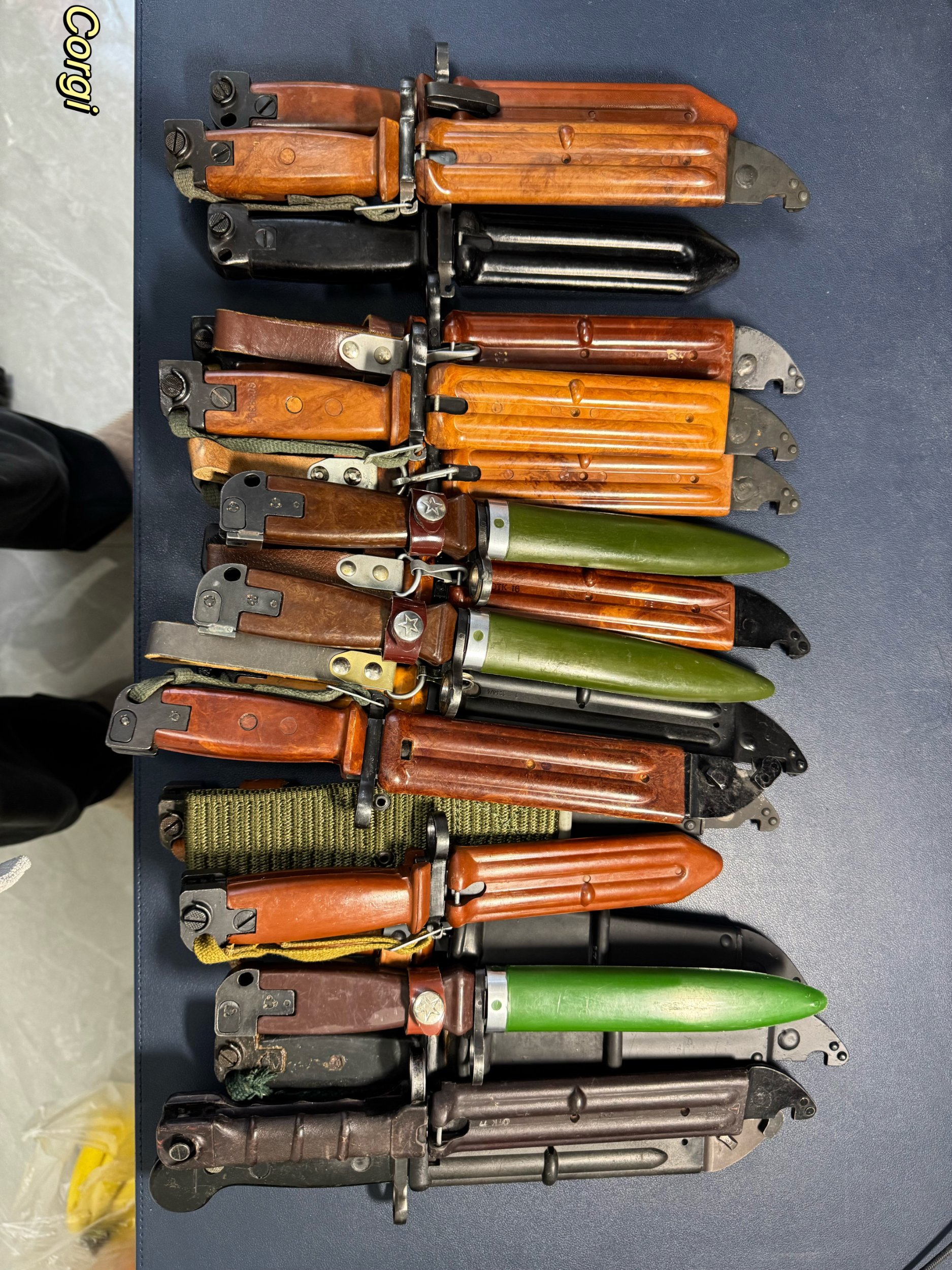 Hello Mr. b, at present, the bayonets in my hand are basically original accessories, and the number matches, I think the original accessories is a cool thingMr. B. wrote: Thu Nov 14, 2024 5:34 pm Congratulations! Very nice collection! I seem to recognize a few of them, old friends! I would recommend displaying them with matching scabbards and correct hangers and straps when possible. They seem naked to me without them. The details make them complete and adds to the challenge and fun of collecting. Sometimes the accessories are more difficult to find than the bayonets. Just my humble opinion. Mike