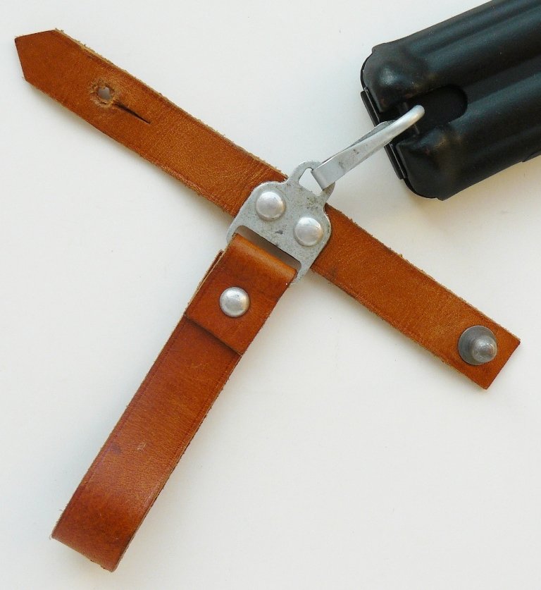 On the 6H4 with the black scabbard, the riveting of the crossguard is cleanly ground flat, the base of the attachment is left angular, very poorly marked with the acceptance mark, and the retaining ring is left with a sharp cast edge.