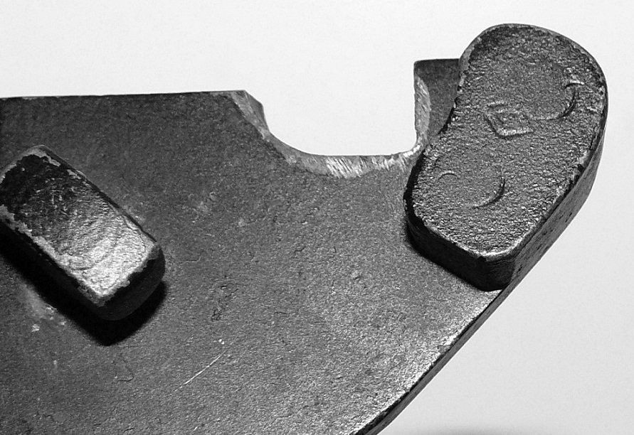 Braunes Pol. 6H4 die Vernietung des Parrierstück schlecht Plan geschliffen,den Sockel von der Aufpflanzung die Kanten angefahst , schlecht mit der Abnahme gepunzt und am Haltering die Gusskante beschliffen.