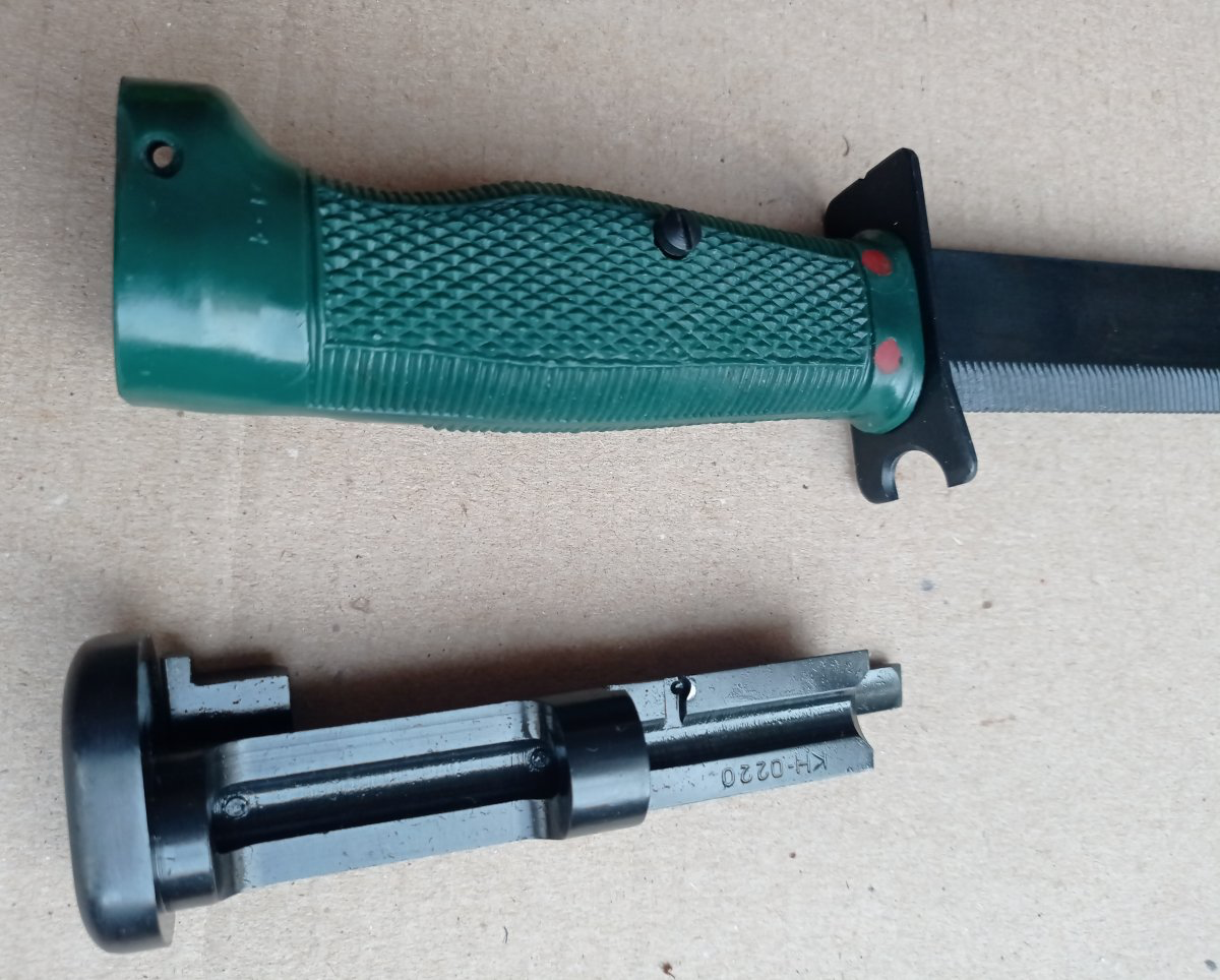 The firearm module inside the knife handle has been replaced with a counterweight module