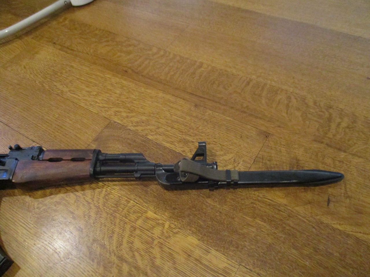 I sent my friend in Nevada an extra DDR AK47 I had to try/display with his replica. He sent this picture back. The "fangs" are missing on the FSB and the pommel "ears" don't seem to fit around the FGB either? I have had several Denix type handgun replicas in the past so not surprised as dimensions all seem to be a little off to prevent parts interchange. Still they make an interesting display together on a wall. I also have several Kalashnikov weapons built on legal semi-auto receivers and front ends of others to be able to interchange parts and display bayonets. Mike