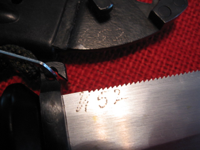I used a new unissued, un-numbered M70 to display my Slovenian(?) strap and hanger. Note the factory assembly markings on the blade and cutter plate.