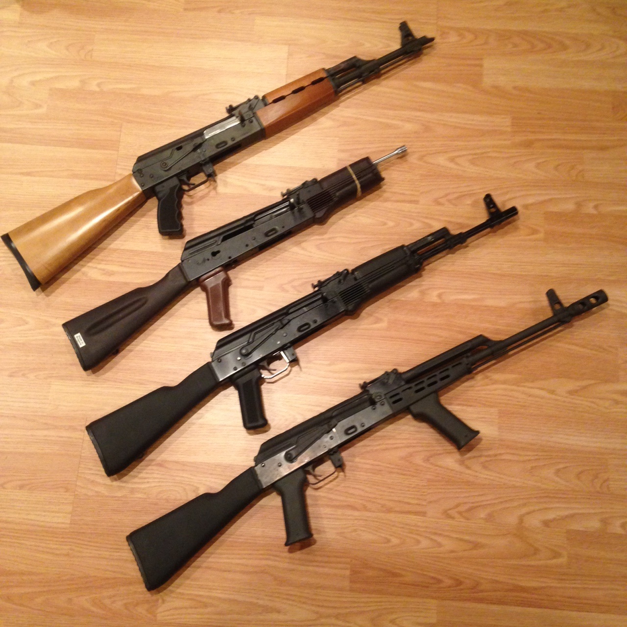 Here are four of mine. Top is my Yugo N-PAP, Plum Bulgarian AK74 Build I'm working on, Saiga I converted in .223, AMD-63