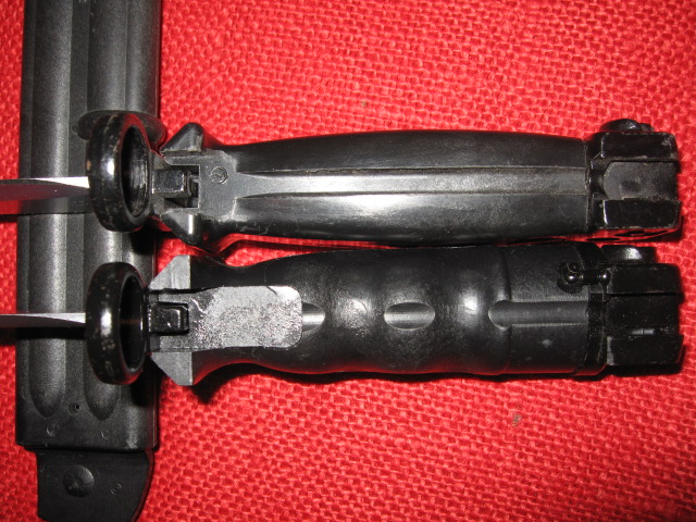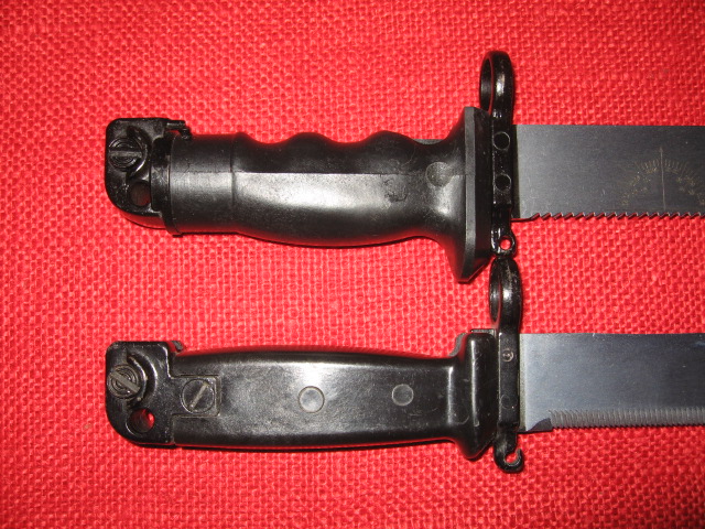 The following pictures show some of the features and differences between the KM87 and the standard East German AKM 6X4 Type II bayonet and scabbard. Mike