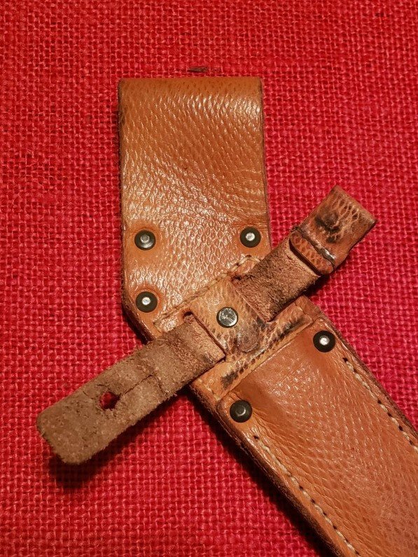 If anyone is interested I have more detailed information and pictures of the Czech VZ58 leather scabbards including construction and markings. The stamped ink markings from each manufacture are unique and located in different places and positions on the back of the scabbards. The also changed with different contract requirements over the years. There are many variables, but most contain the crossed swords and OTK military acceptance marks, the contract date and number, the date of manufacture and the ID of the maker. Unfortunately, most of the markings are worn off or un-readable. Mike