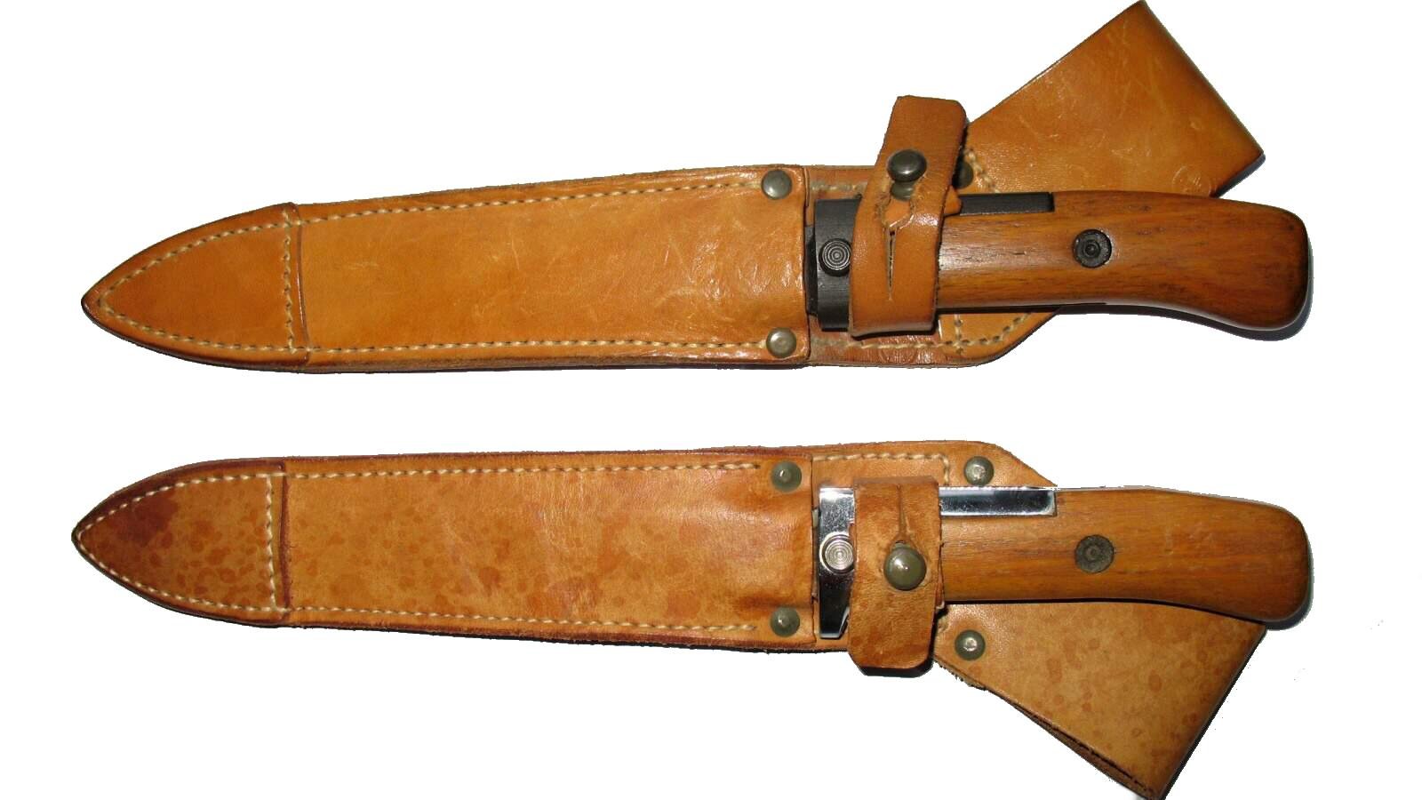 I recently found pictures that I believe confirms the existence of the early 5 rivet LEFT HANDED scabbard made by the original manufacturer Galanta. This scabbard is shown with the correct VZ58 Type I bayonet. The second picture shows the comparison with the Left hand version on top and the more common Right hand version below.