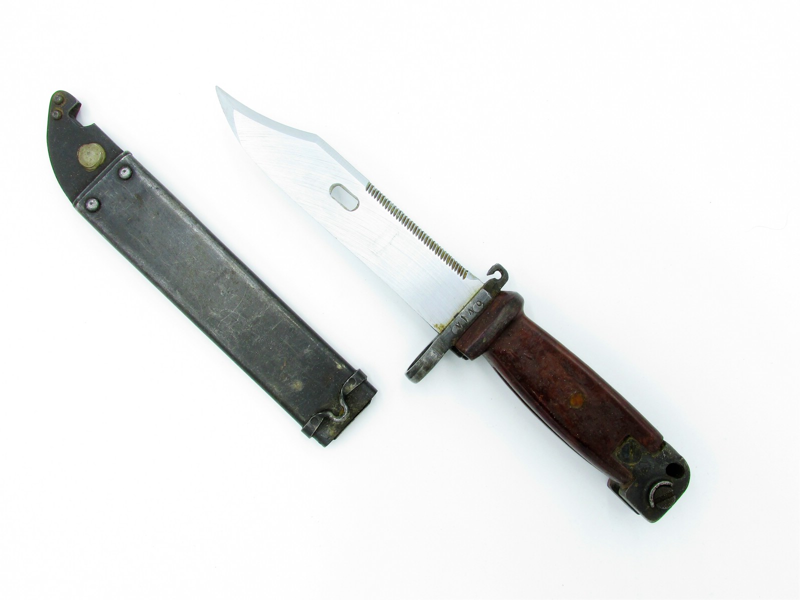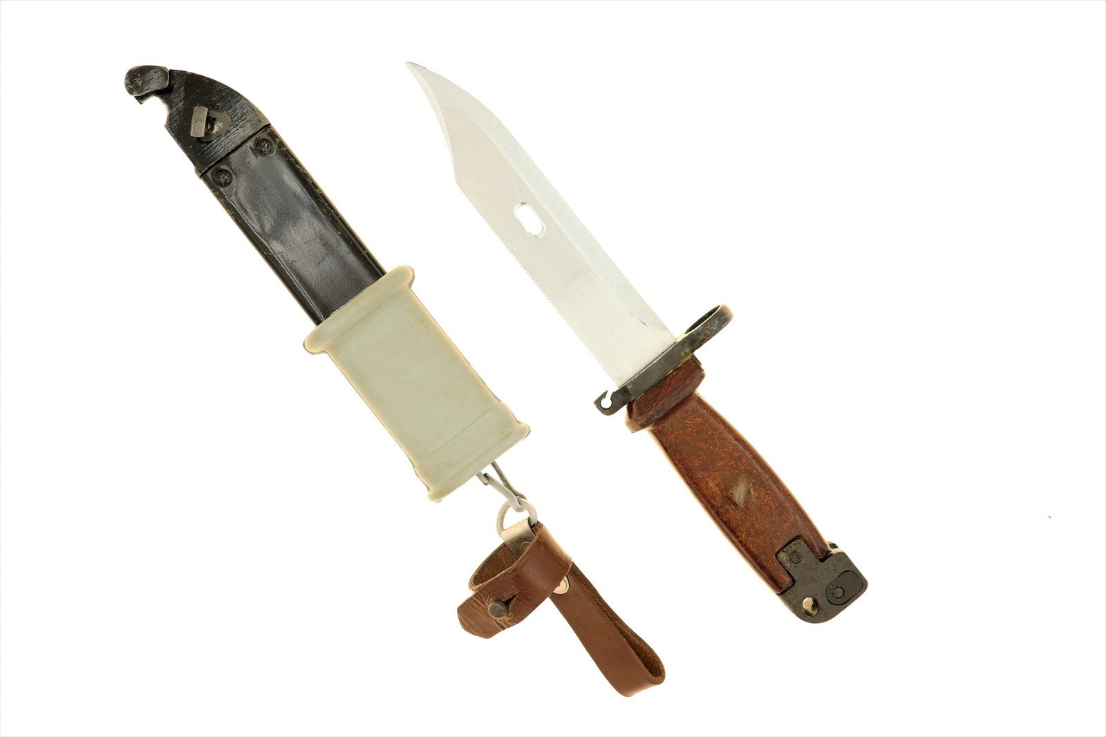 We know that Egypt acquired the equipment and technology to make these bayonets and scabbards from Russia. Iraq did the same, supplied with equipment and tech. from Yugoslavia. Previous to this being completed, it is extremely possible that either or both countries started assembly / production using parts imported from various ComBloc sources. Using parts from Russia, Poland, Hungary, East Germany, Yugoslavia, Romania along with all the parts they could manufacture themselves. Eventually both being able to manufacture complete items on there own. No markings, no records or documentation, no one cared, we will probably never know who, where or why. Mike