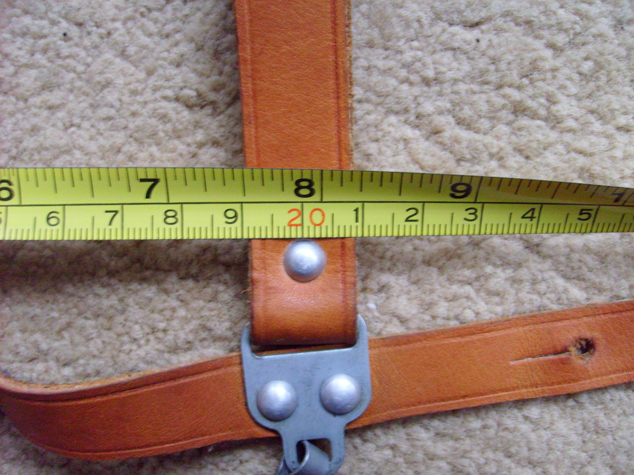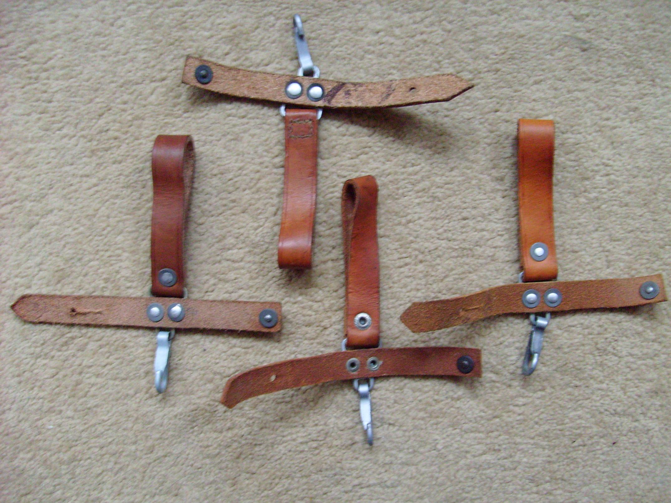 Good pictures! Lot's of different variations in these hangers. Different leather colors, dimensions, rivets, construction and finishes. M.