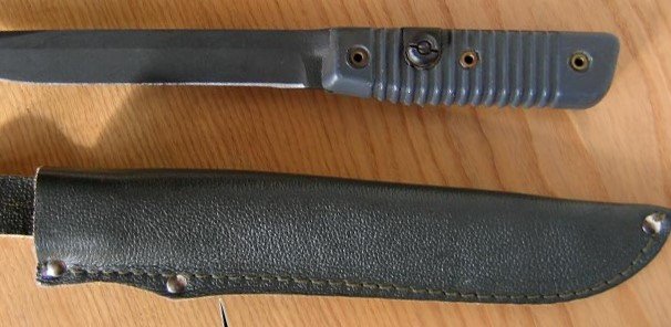 Fiskars also makes a hunting knife of the same design with a wider blade. Another possibility for the origin of the scabbard.
