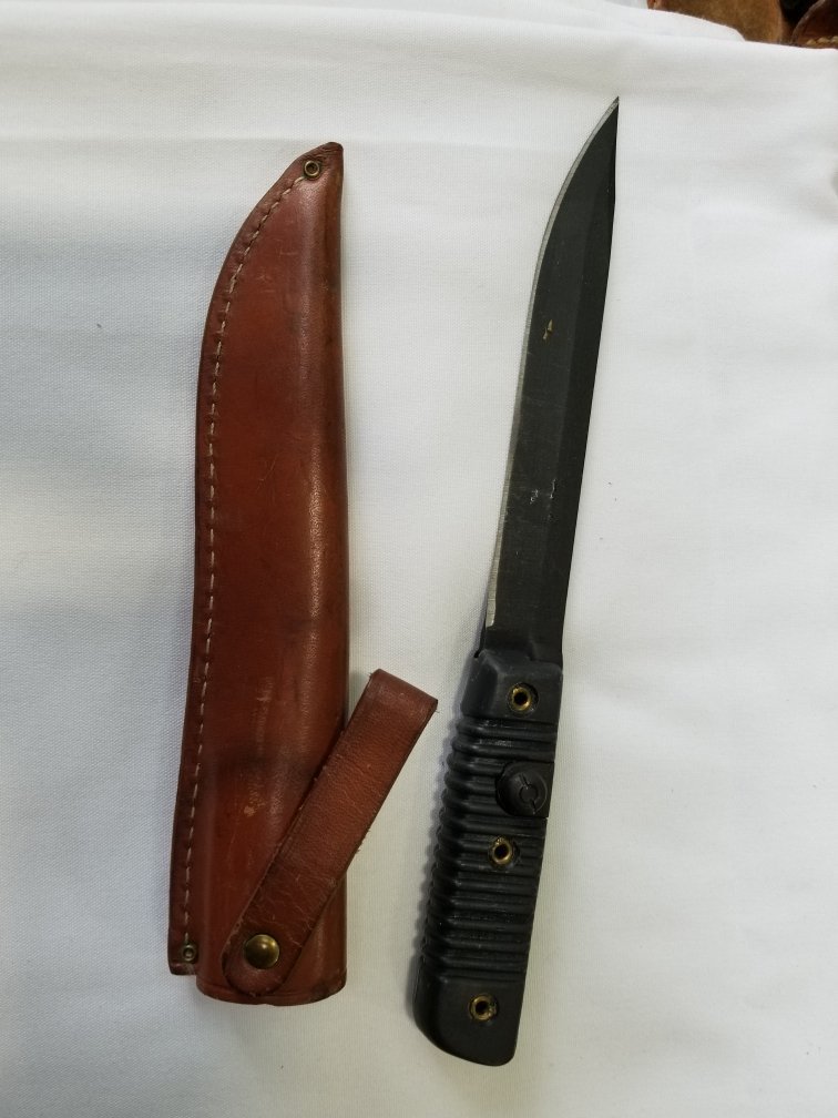 Mike, that last, natural leather sewn scabbard looks like a Fiskars fishing knife scabbard to me.
