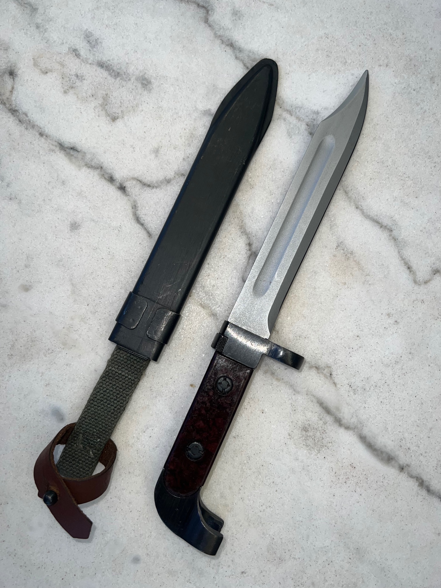 I also would like to have one of the more common ones to display and study. That would be the one with the AK-47 style hilt and the newer style AKM bowie blade. At least there seem to be a few of these in circulation and they are pictured In several references. The second reversed style, with the Ak47 blade in an AKM hilt, seems to be a one of kind sample. For me, the jury is still out on this one. It doesn't seem logical or practical to me. Mike