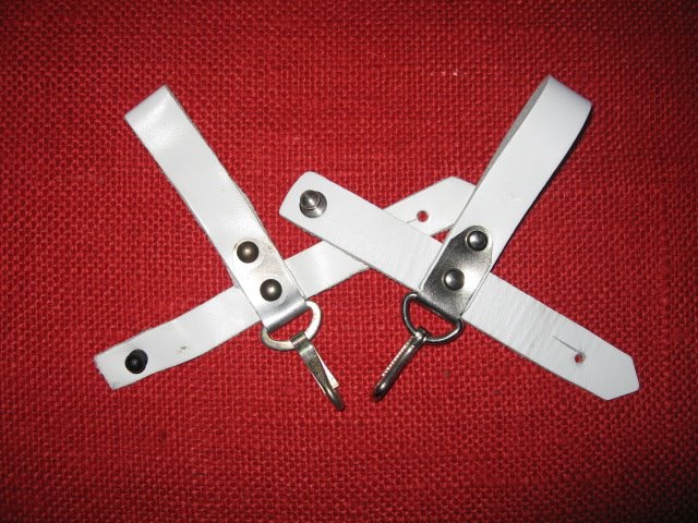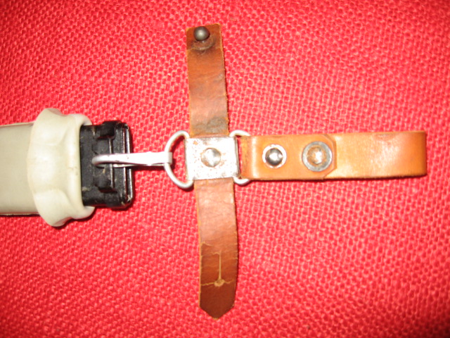Here are a couple more Russian snap hook hangers that I recently received from a dealer in the Russian Federation. I usually do not collect specialty items, parade, dress, special issue etc.. However, these made a nice display as they represent both early and late issue items. The one on the left is the early variation with the flattened "D" ring. The white faced leather is thinner and smaller in width than the later style. The newer current style is also white faced leather only thicker and slightly wider with a round wire "D" ring and has a newer snap hook as well. Mike