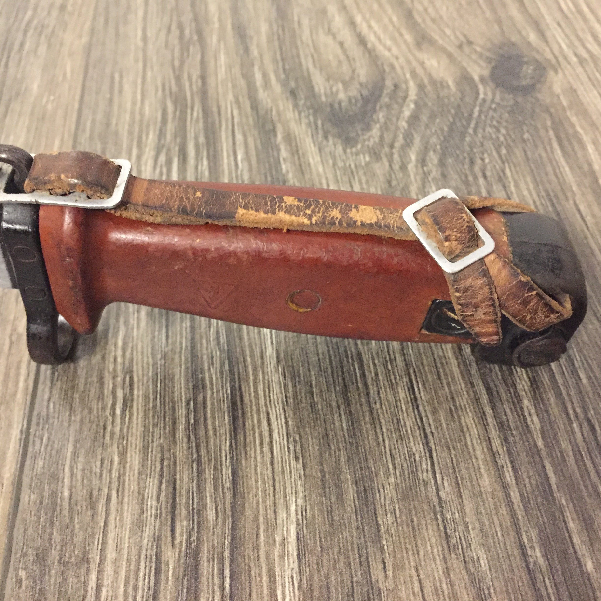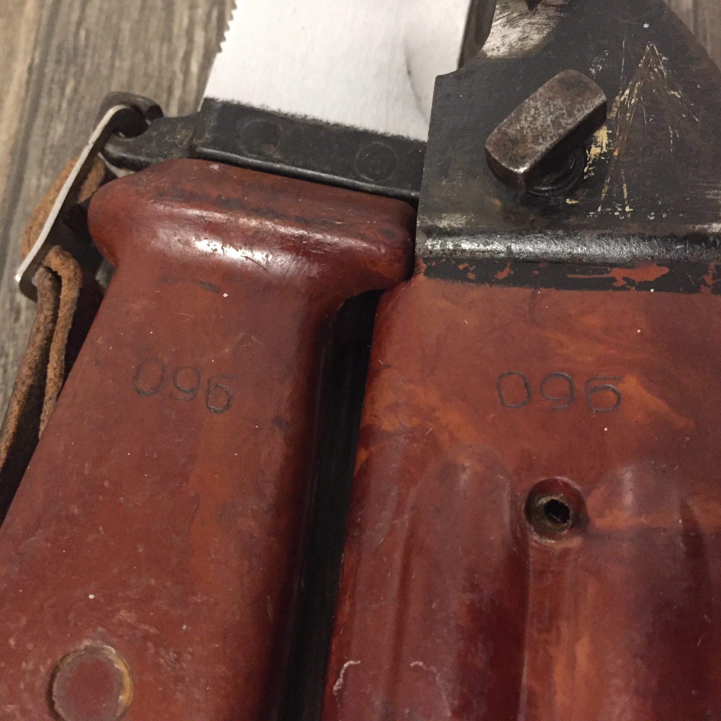 This two hook style hanger style was also adopted and used on early East German (DDR), Romania and is still in use by Hungary with only minor differences on AKM Type I bayonets and scabbards. Mike
