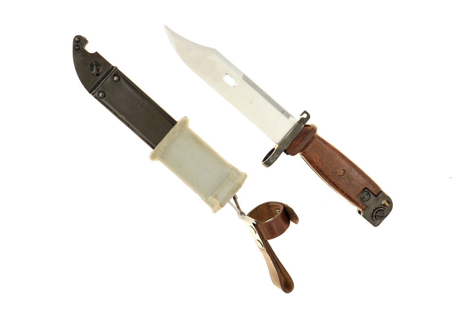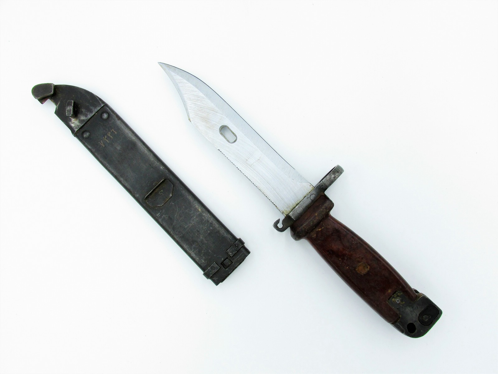 We know that Egypt acquired the equipment and technology to make these bayonets and scabbards from Russia. Iraq did the same, supplied with equipment and tech. from Yugoslavia. Previous to this being completed, it is extremely possible that either or both countries started assembly / production using parts imported from various ComBloc sources. Using parts from Russia, Poland, Hungary, East Germany, Yugoslavia, Romania along with all the parts they could manufacture themselves. Eventually both being able to manufacture complete items on there own. No markings, no records or documentation, no one cared, we will probably never know who, where or why. Mike