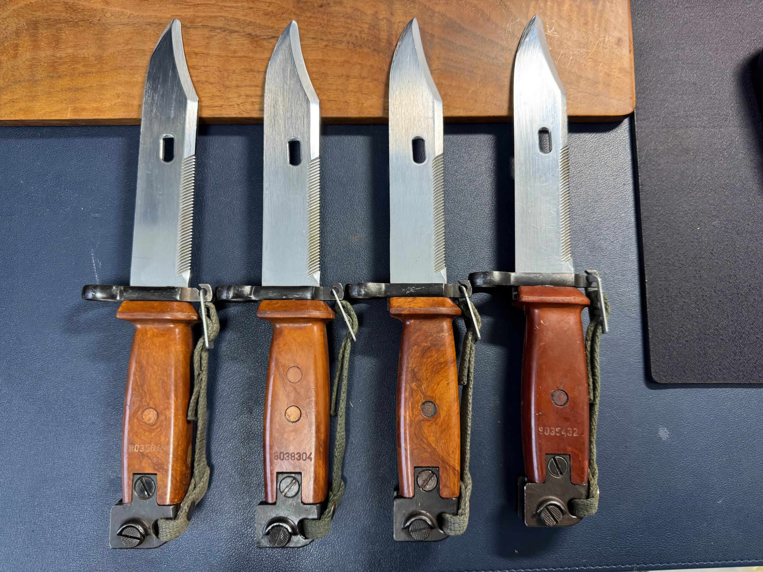 Very nice examples! Obviously these are out of production and getting rarer every day. Hopefully all four of these have matching scabbards and correct hangers? Mr. B.