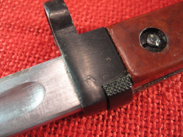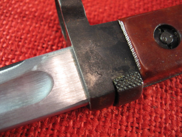 I have examined the few pictures that are available and discussed this bayonet and scabbard with a couple collectors from Europe and Asia that own them. Both of these samples supposedly came from China. The question is who made them and how did they get there. China may have imported small quantities of Russian AK47 rifles and bayonets along with the machinery and a license to build them. However, as they started production of their version, the Type 56, they went with the attached folding spike bayonet and supposedly never produced or issued a blade bayonet. No evidence exists indicating that the Chinese ever purchased the machinery or manufactured a traditional flat blade AK47 bayonet. One would also assume that any AK47 rifles and bayonets imported from Russia or any other ComBloc county would have had that countries markings. For example the Russian marks found on the Finnish, early East German and Bulgarian AK47 bayonets and parts.
