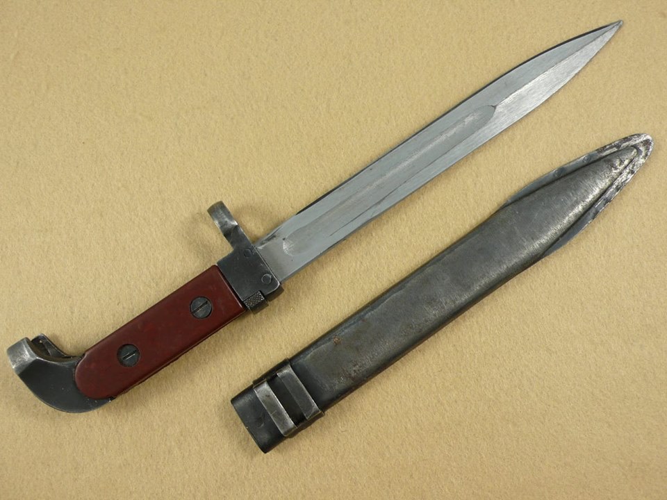 My apologizes MDI. Your reply was posted in the middle of my rant. I agree with the North Korean assessment. It would be nice to see more detailed pictures of the swastika bayonets and scabbards for more identifying details. Possible unseen or hidden markings. scabbard construction and drain hole. Also I do not see a rivet/attachment for a scabbard drag? Construction/assembly details from all angles would certainly help. One strange thing I noticed is that both of the two samples appear to be in VG/EXC condition with little if any wear, but yet neither one has a hanger, which were usually permanently attached. For some reason I keep thinking of the hand made copies/fakes that were on eBay a few years ago. However both owners are knowledgeable collectors and claim they came from reliable sources in China. Mike