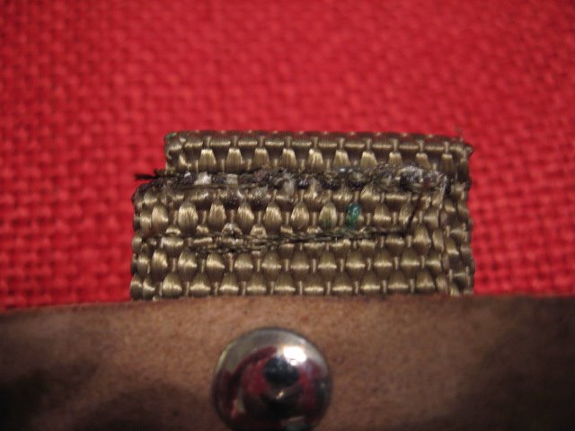 Mine doesn't have weird stitching. The stitching looks like original but on closer examination the webbing has obviously been cut off of something. When I'm wrong, I'm wrong.