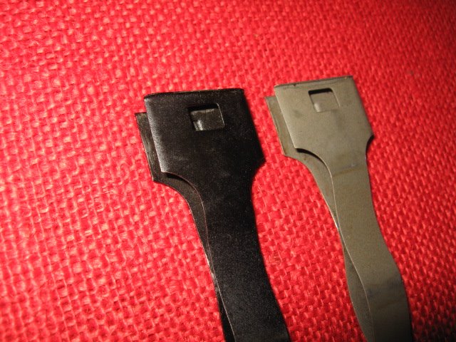 There is also another cutter plate difference not noted in the references. On the Tula scabbards the cutter plate is shorter and a slightly different shape at the tip on the earliest scabbards compared to later ones. In the picture below the earliest scabbard is on the left. The one on the right is also early production with the flat top cutter plate pivot and without an insulator stop. This would indicate a change during early production. Mike