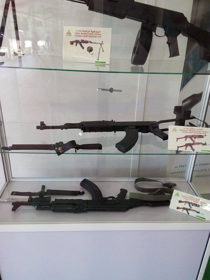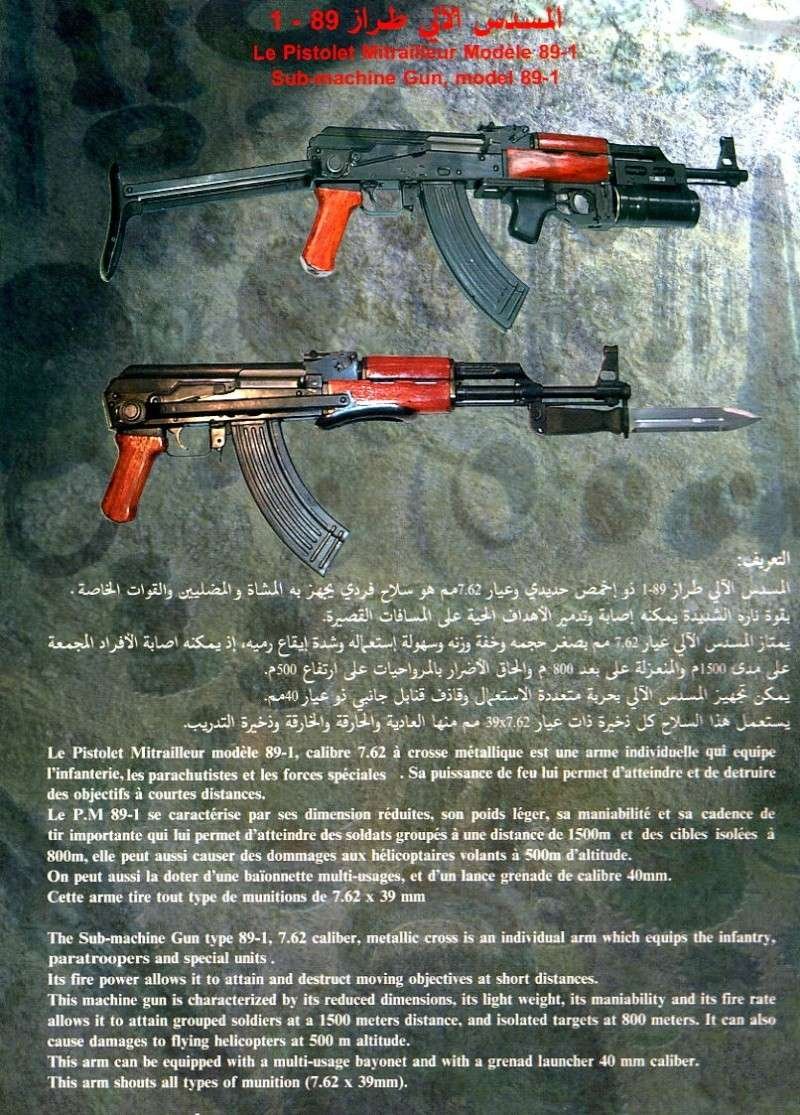 Nice find. That is in the format of your basic Chinese export catalog but is from an Algerian company using an Chinese arsenal code of 831 and is in Arabic and French. They are referring to the rifles as the Type 89. Black gripped version of the Type 81 with wire cutter scabbard is definitely interesting as is what looks like a local produced version of the Soviet GP25 under barrel grenade launcher. They also appear to produce an RPK with what appears to be a horizontal drum in the catalog photo, a Makarov copy, and a 12 gauge pump shotgun. The Makarov and 12 gauge would be copies of copies produced by the Chinese.