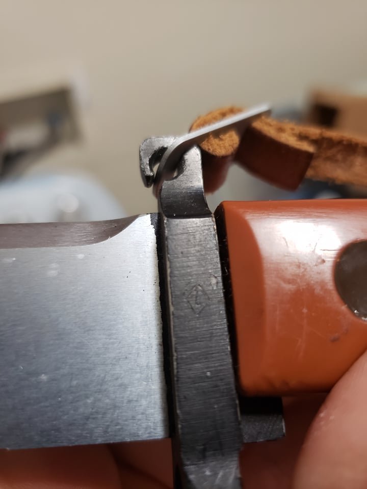 Here are better pictures of one of the Polish AKM 6H3 Type I bayonet and scabbard in the 1st post on this subject. I have also heard that the solid orange grips are from being replace during rework. The pictures below were posted today on an AK Bayonet Collector FB page. (Thanks, C.H.).
