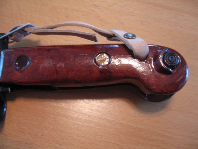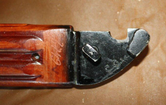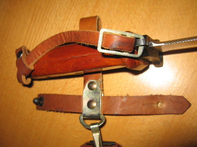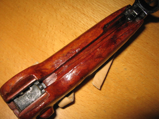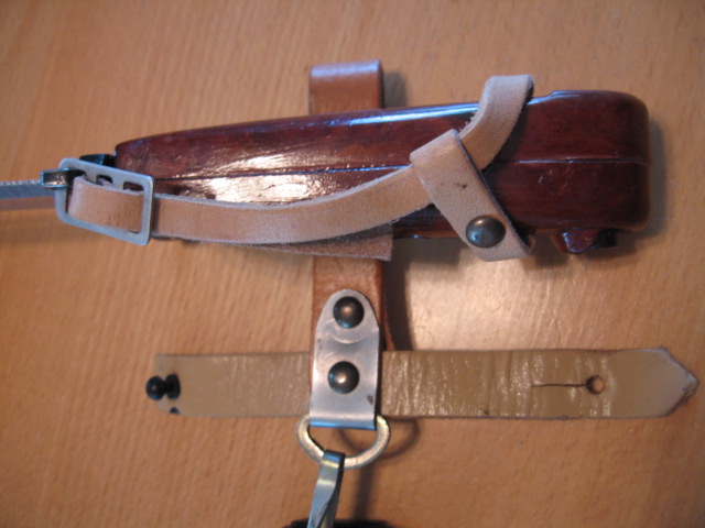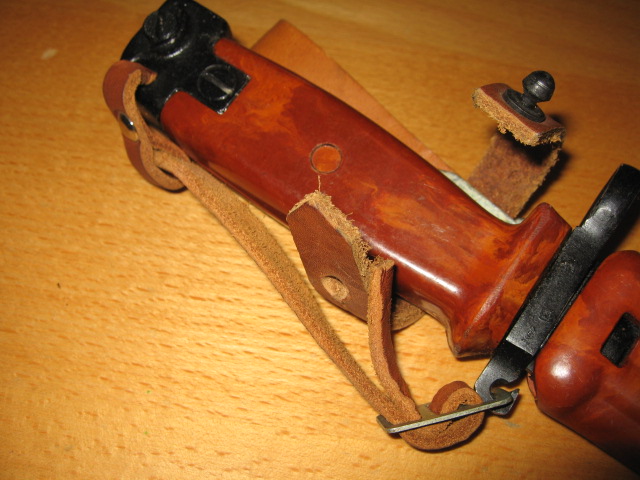 Then, I also wondered about the wrist strap. Unlike others I have seen, this one is raw (good quality) leather without a smooth side. Both sides have the suede-like finish. I would have guessed a field replacement, but it is riveted properly. So I am guessing just the batch of leather that was used at the time where these were arsenal refinished? Has anyone come across this kind of leather wrist strap before? Of course, hangers and wrist straps can take any number of forms, and whatever can be used has been used. So just wanted to check if I should keep this, or pass it on.