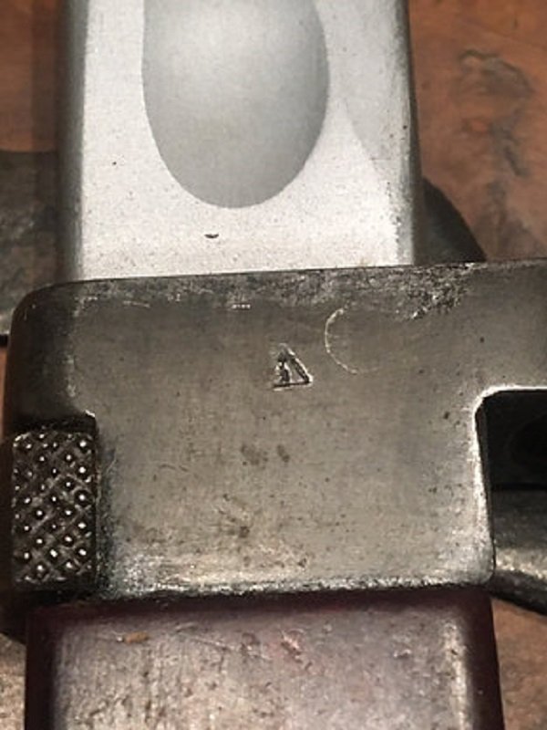 As usual, not enough detailed information in the provided pictures. What information that is there is conflicting and confusing. Not sure where to start. First it appears that the bayonet and scabbard are miss-matched.