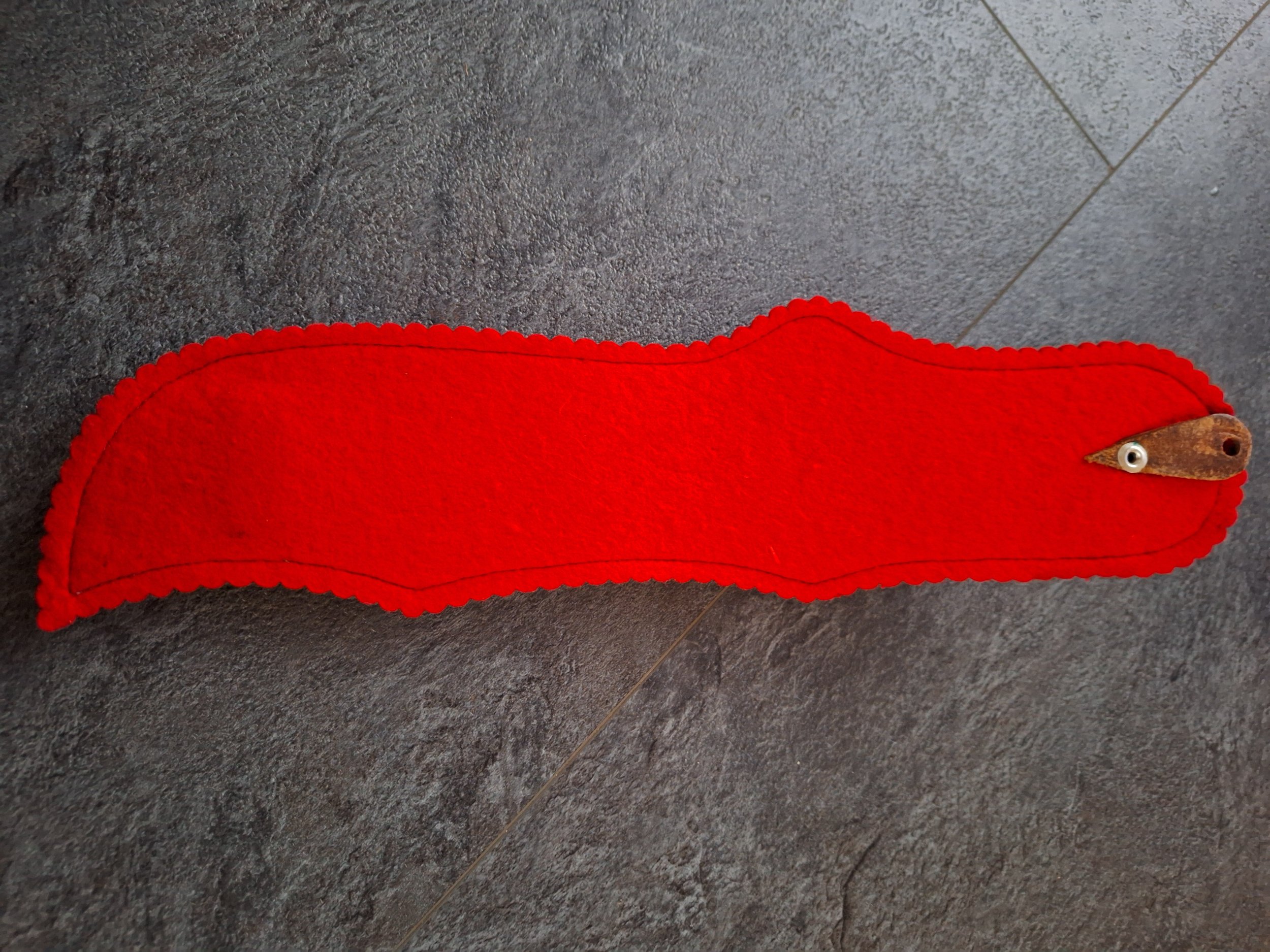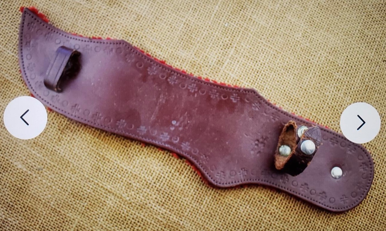 Also the Type 1 have a different material marbled handle instead of the later brown plastic. The Type 1 scabbard has a cast/machined cutter plate. The Type 2 has a stamped cutter plate.