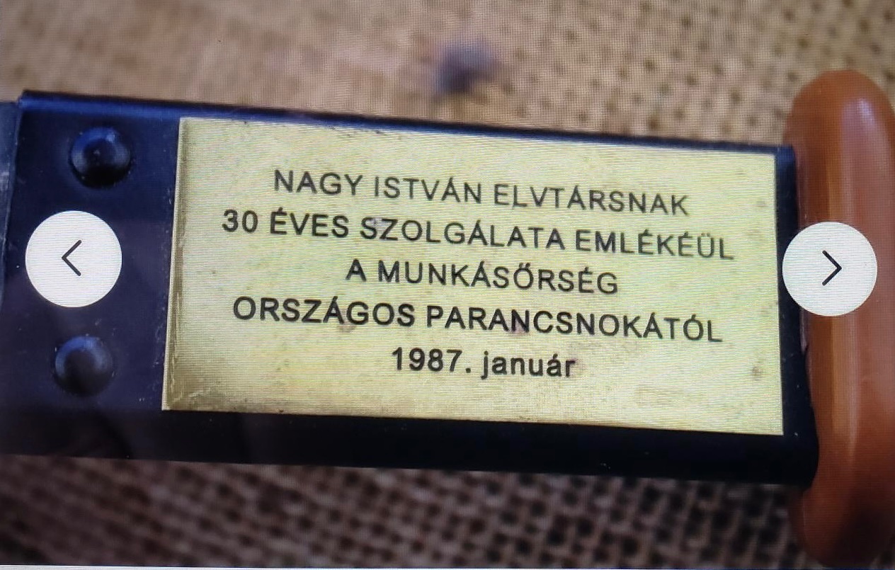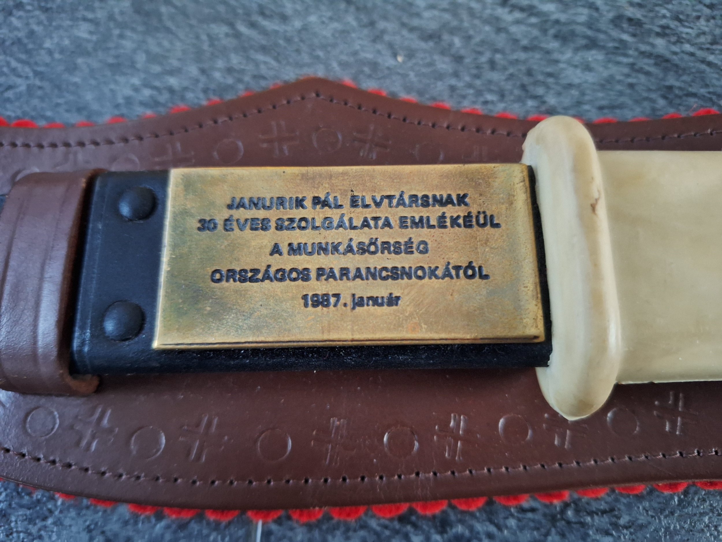Next, on the scabbard there is a brass plate with a inscription in Hungarian.