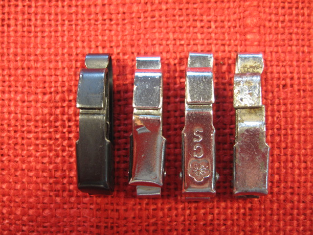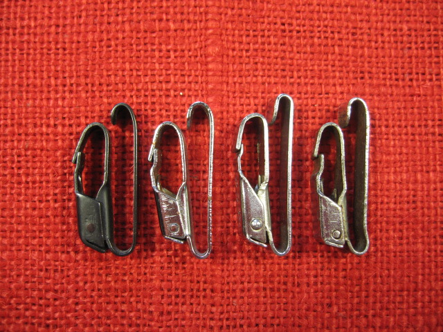 A question was asked recently about the small metal belt clips occasionally found with the Chinese AKM non-wire cutter bayonets and scabbards. These clips were usually found as accessories along with bayonets with the imported AKM rifles. Here are 4 representative samples of the Chinese AKM belt clips. There are many different ones to be found. Differences in dimensions, assembly, materials, and finishes. The metal used is different thickness and hardness. The finishes vary from blued to thin nickel plating and hard chrome. Mike