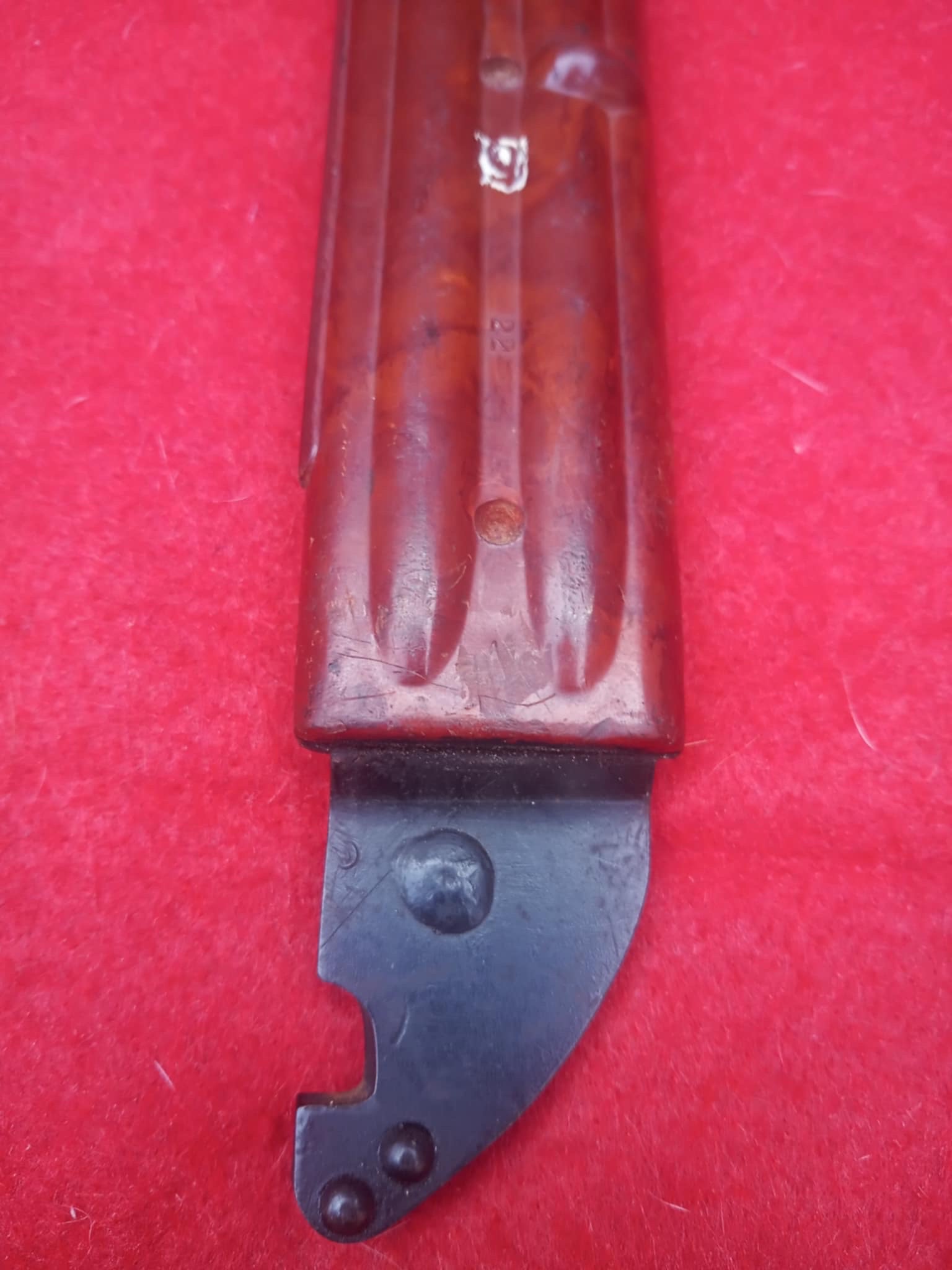 We seem to have wandered of track. Your original post was about your Egyptian marked Tula 6X4. Here is what we know for sure. It is Russian made, apparently at the Tula Arsenal. Someone, at some time, in some place has added what appears to be Eastern Arabic numbers. There is virtually no way to confirm who, where or when. These Russian bayonets and scabbards have been distributed world wide. Arabic numbers do not make it Egyptian!