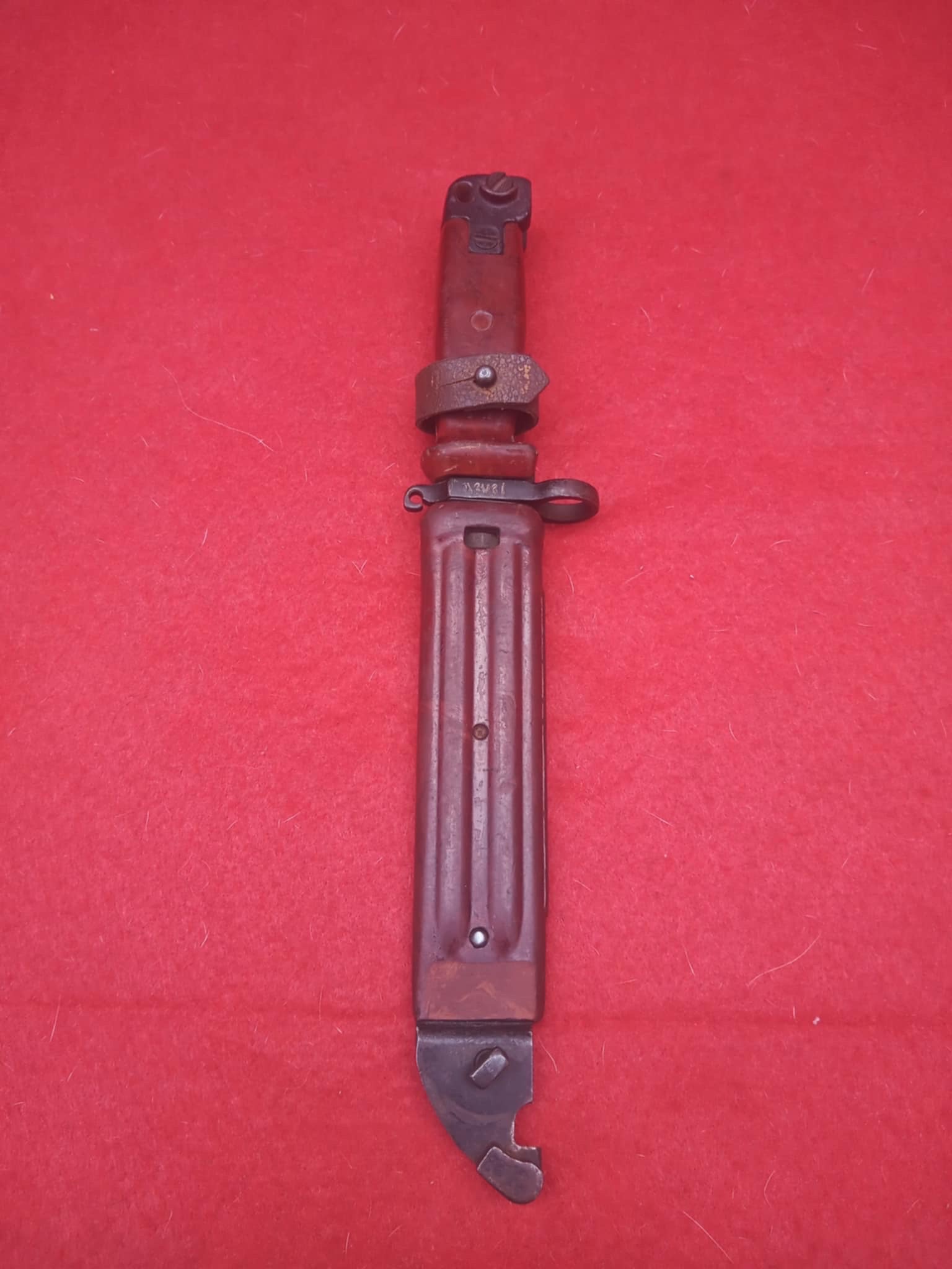 Let’s start over with your bayonet and scabbard. All the other pictures are out of context and of no meaning to me. Your bayonet is a Russian AKM 6X4 Type II early version with the machined pommel and crossguard, (no visible rivets). These were made from 1965- 71. From what I can see it was made at the Tula Arsenal. The original arsenal marks have been stamped over or removed so no confirmation. However, the round rivets on the scabbard cutter plate stop and the off-white paint stamped inspection marks on both the bayonet and scabbard seemed to be from Tula. We can not see if there are original numbers or Russian Military acceptance marks, (OTK or CB or a flattened diamond shape). The style and placement of original numbers and Acceptance marks could tell us if they were made for Russian use of if for a contract with an other country. The matching five digit Eastern Arabic numbers indicate a large number provided or sold to an unknown Arabic country or group. If this was a contract order these numbers could have been placed in Russia or by the new owners. They do seem to be somewhat consistent in style and placement, but use both four and five digits?