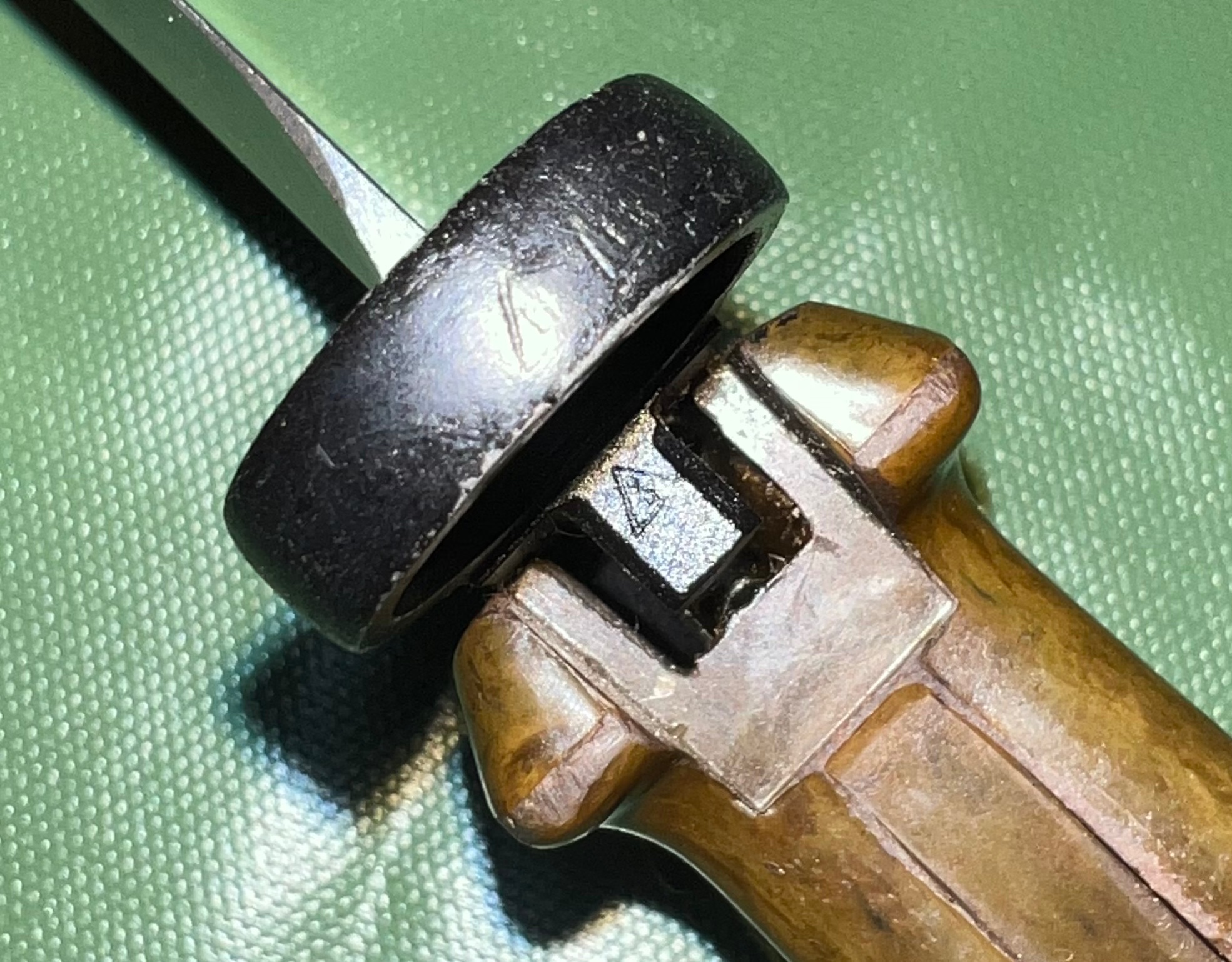 These "Green" bayonets and scabbards are unique to the Russian Border Guards. They are an integral part of their uniform and worn almost daily on duty. Lots of wear and tear. The metal Type I scabbards in particular are easily damaged and it appears they are often reworked, repaired, replaced, and reissued / re-numbered.
