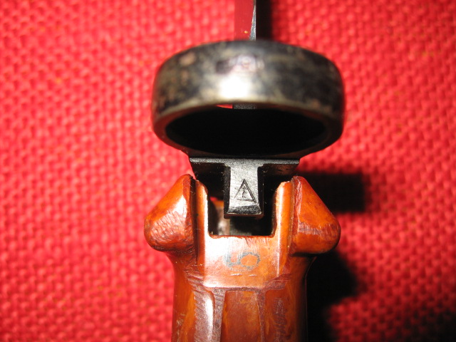 In my opinion, the following Tula and Izhevsk arsenal marks represent the earliest or first step in 6X4 bayonet and scabbard production. The arsenal marks for both arsenals are found on the small flat behind the muzzle ring. I base this assumption on the fact that this appears to carry over from the end of the 6X3 production at both arsenals. There are no markings on the grips, not even mold numbers. The pictures are of two bayonets from my collection, both have matching original numbers.