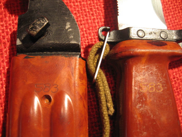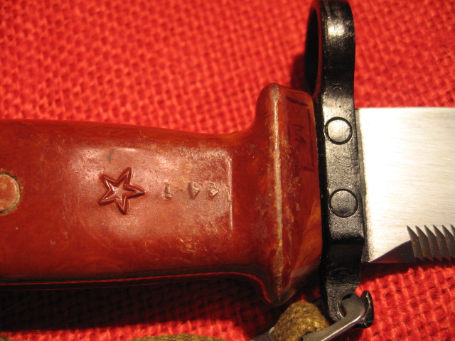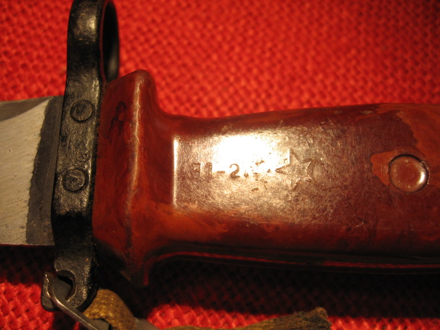 A side note to help identify the different arsenals. The ink/paint inspection/proof marks on the Tula bayonets and scabbards are usually white/yellow. The Izzy ones are usually black ore a dark color.