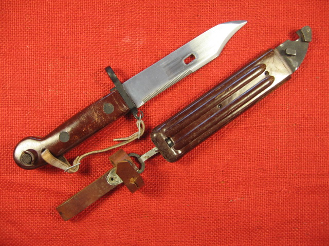 For me it's an export hungarian AKM I in a Tabuk scabbard with a east german frog (i guess), i have one like this.