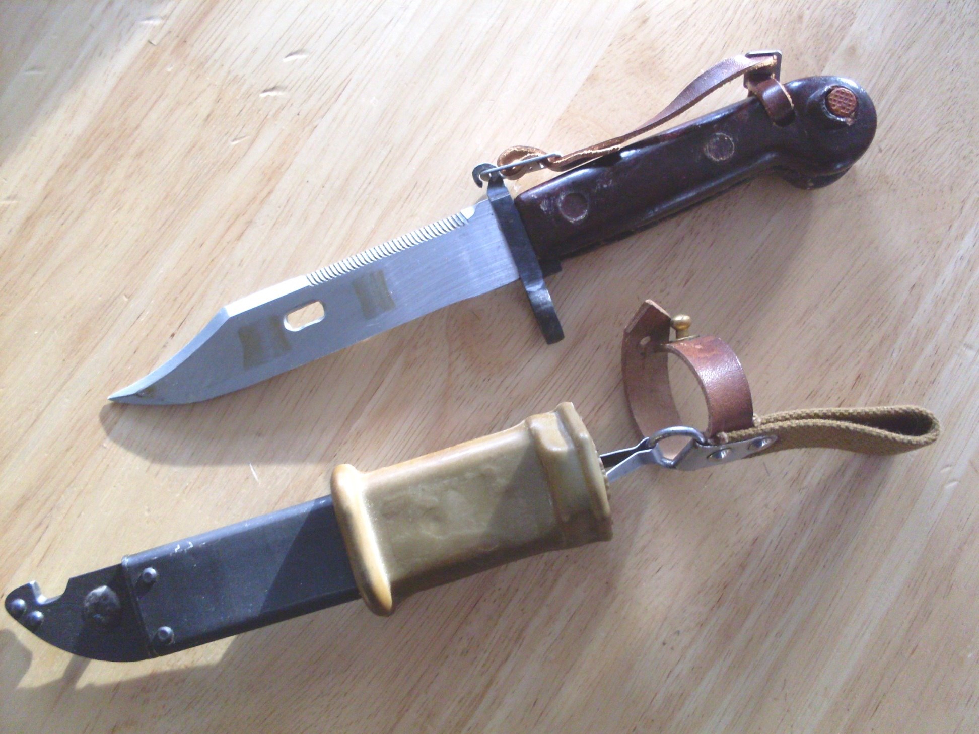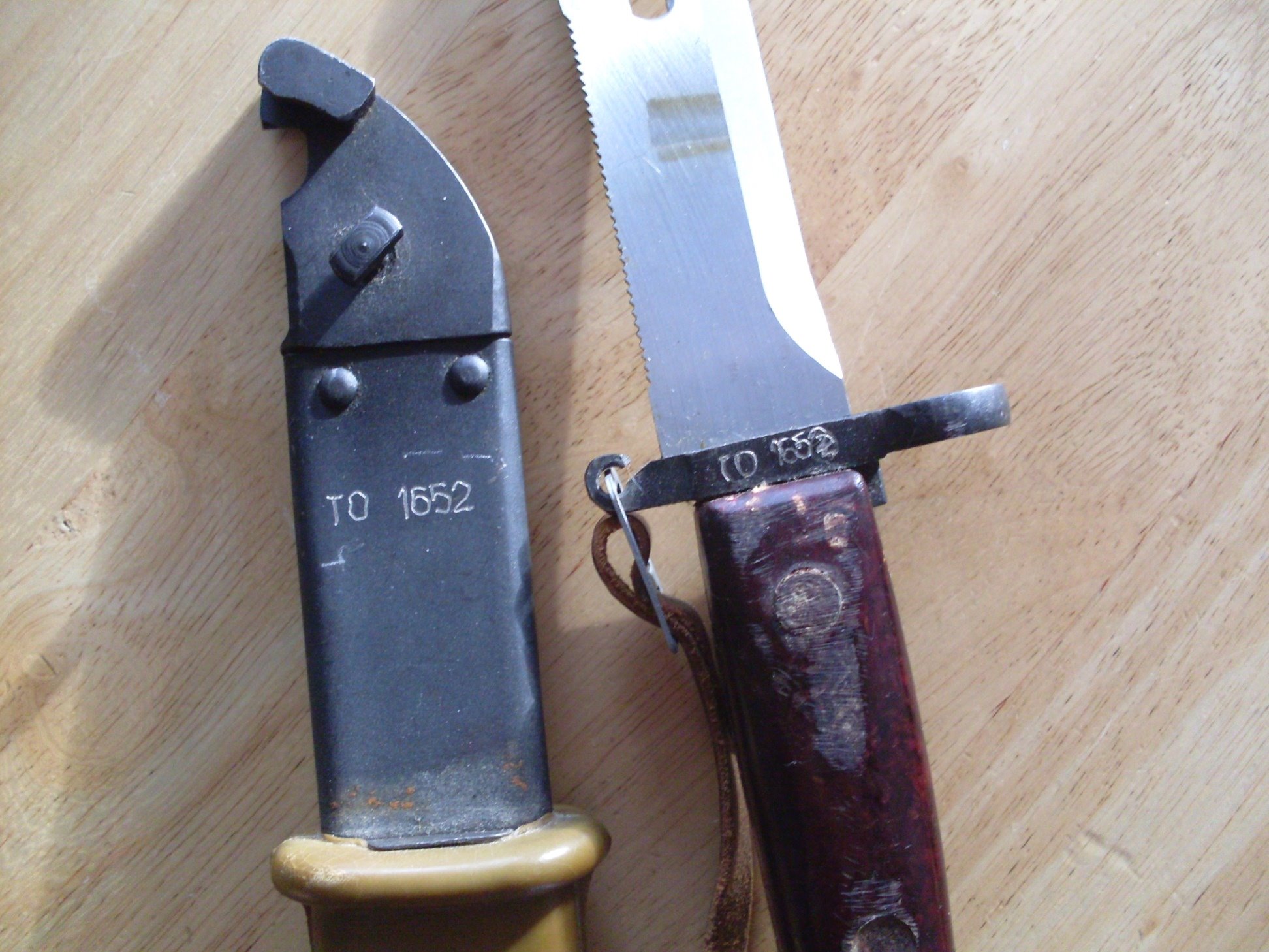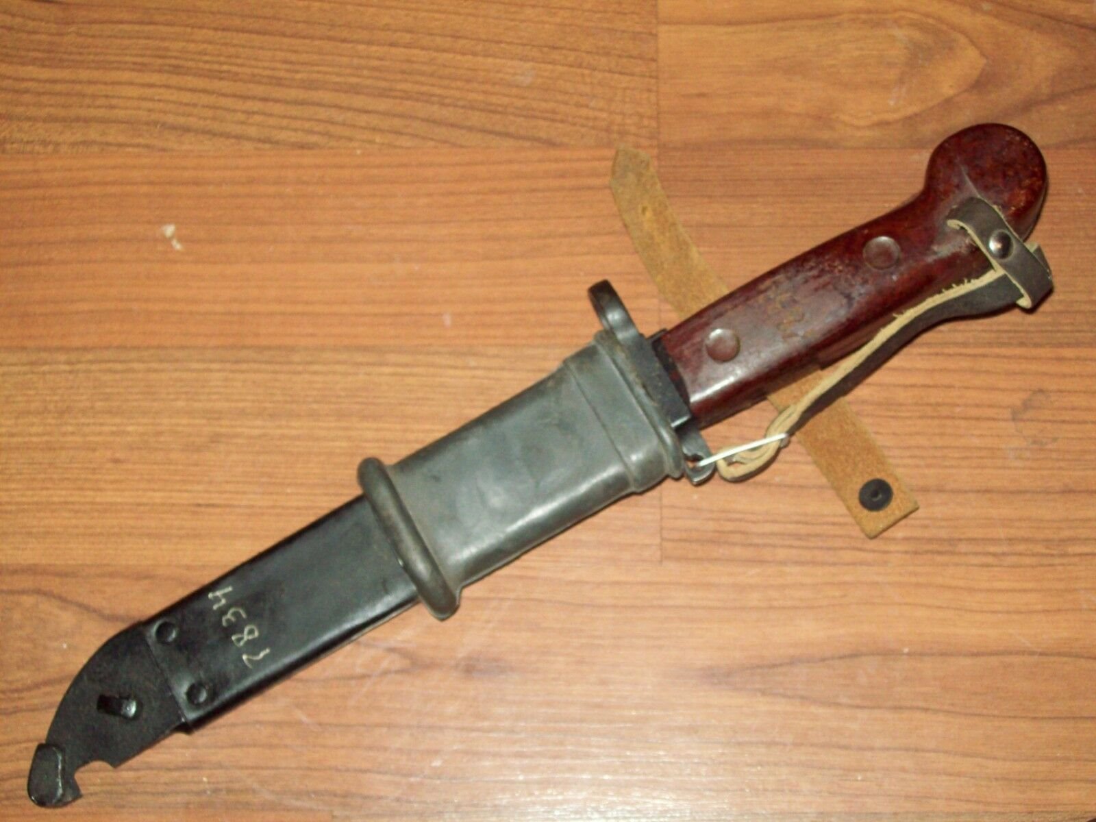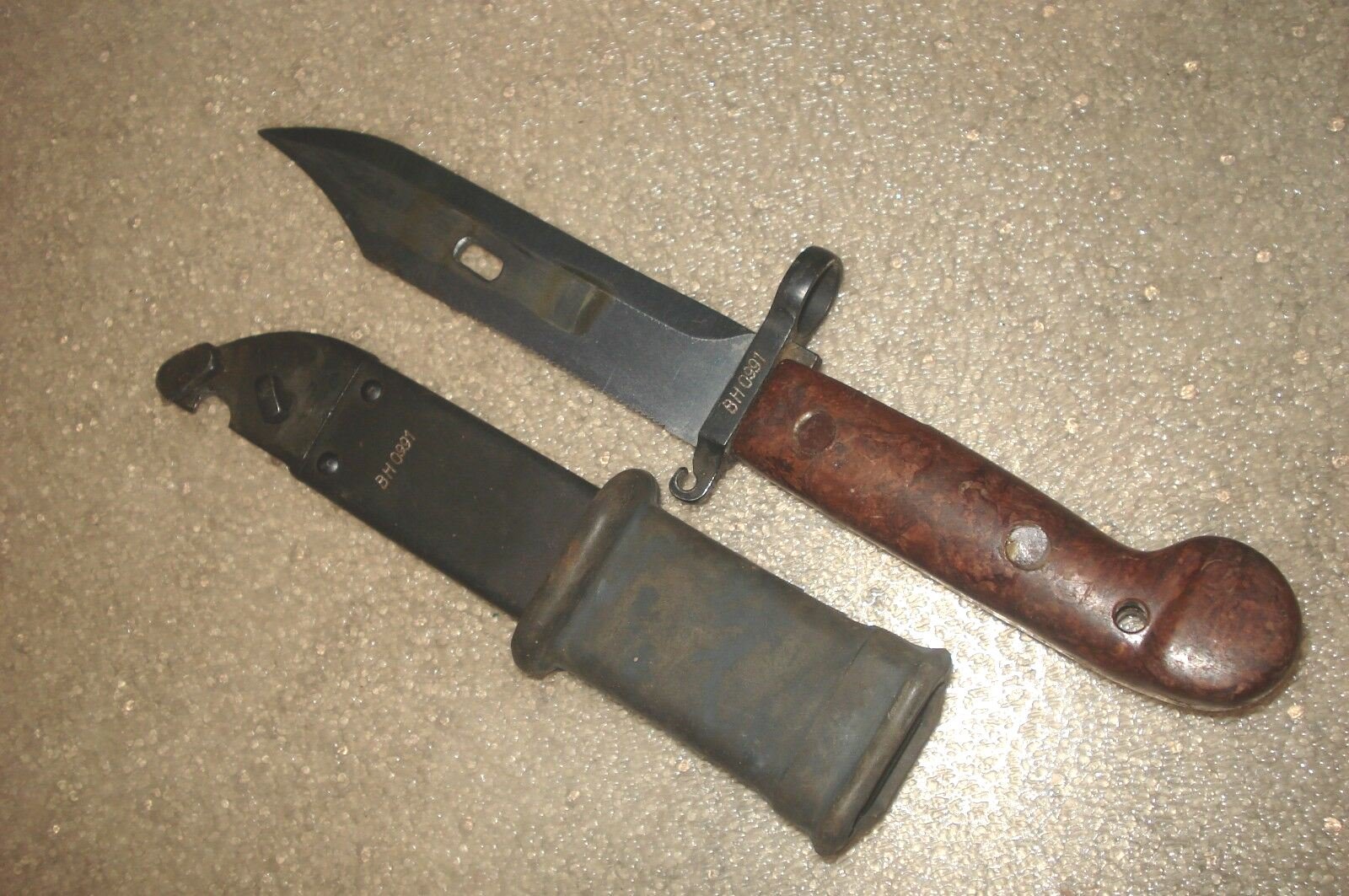 Thanks for proper answer(s).Mr. B. wrote: Mon Dec 17, 2018 3:58 pm Yes, both the AKM 6X4 type I bayonet and scabbard are Hungarian. They are a miss-matched as the scabbard is an early Hungarian military issue due to the stamped numbers on the scabbard cutter stop. The bayonet is a later export version with no markings or numbers. Mike