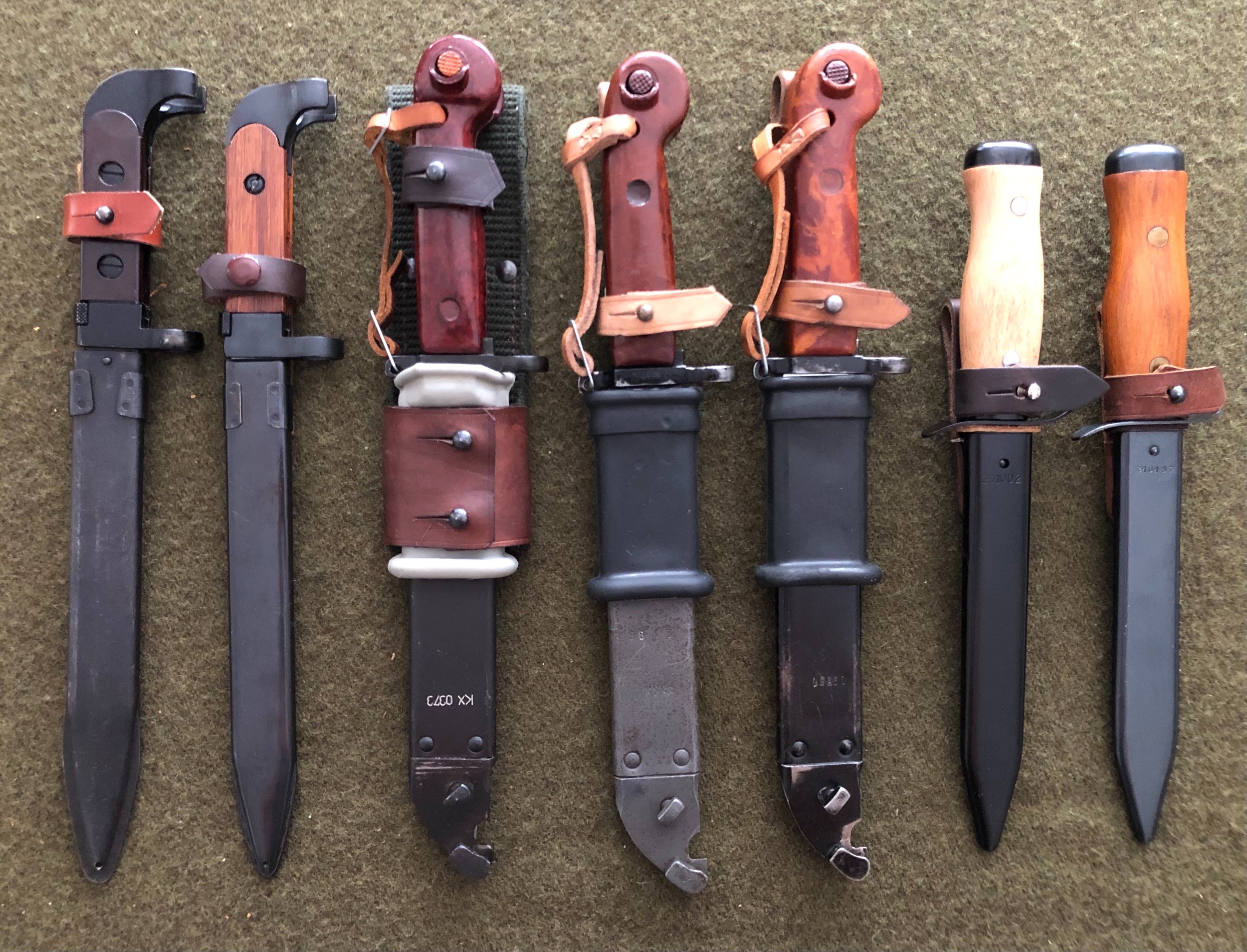 This is my humble collection of AK bayonets to date. They are getting hard to find these days, I regret not picking up more back when they were cheap, plentiful and nobody wanted them.